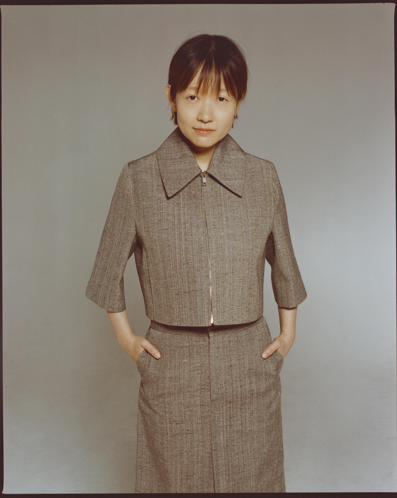 Celine Song wearing Bottega Veneta. New York City, 2025. Creative direction by Fatima Khan, photography by Max Montgomery.