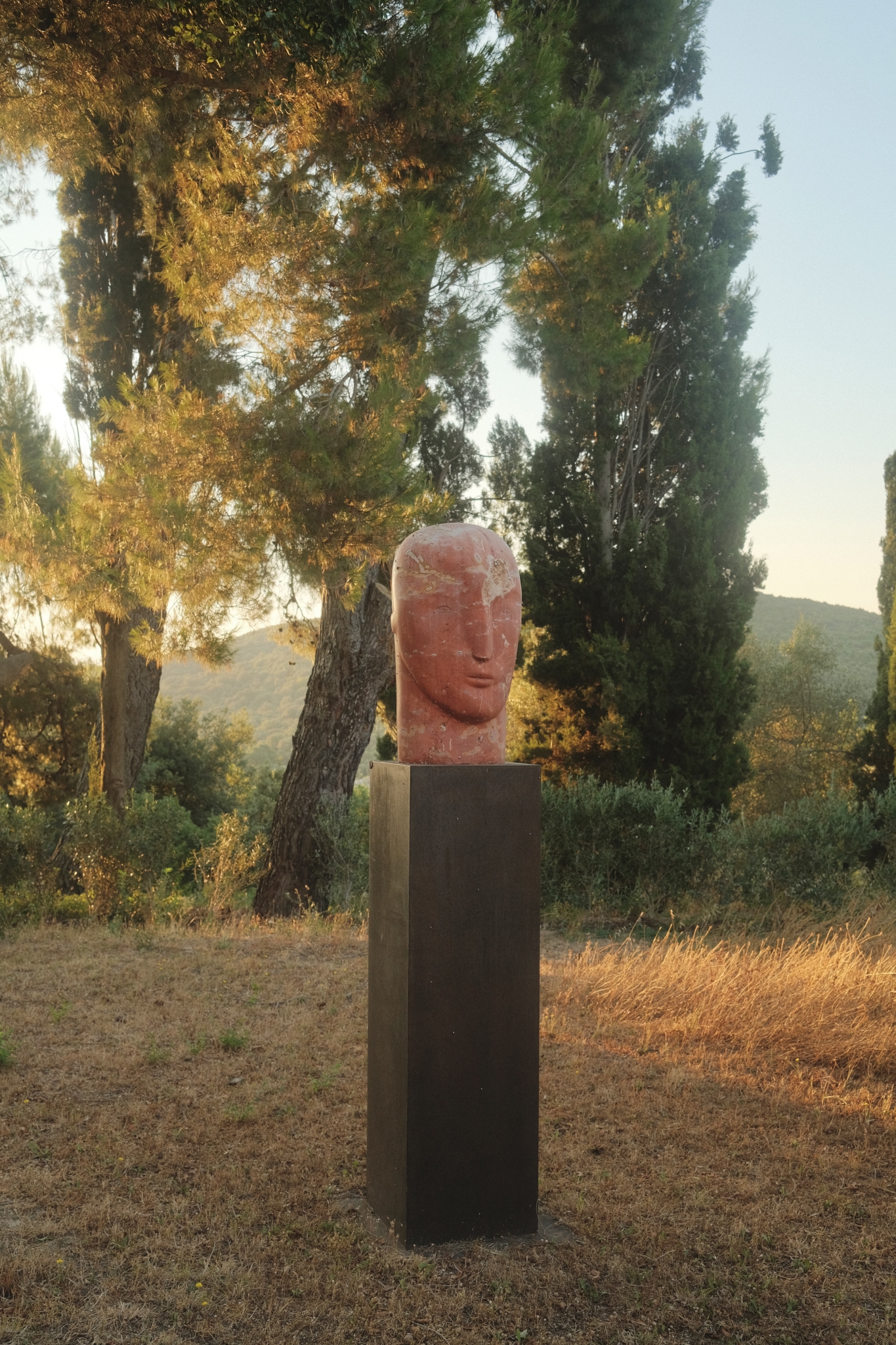 Emily Young, Rouge de Vitrolles Head, 2011, Rouge de Vitrolles. Height 90cm. Photography by Issy Carr.