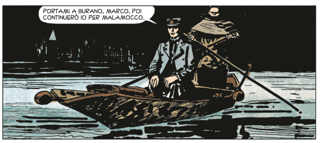 I saw Hugo Pratt drawing Venice from afar, from Malamocco, from his home that seemed like a ship always ready to leave for distant seas. He looked for reflections, memories, mirages and found magic with its light colored waters.
