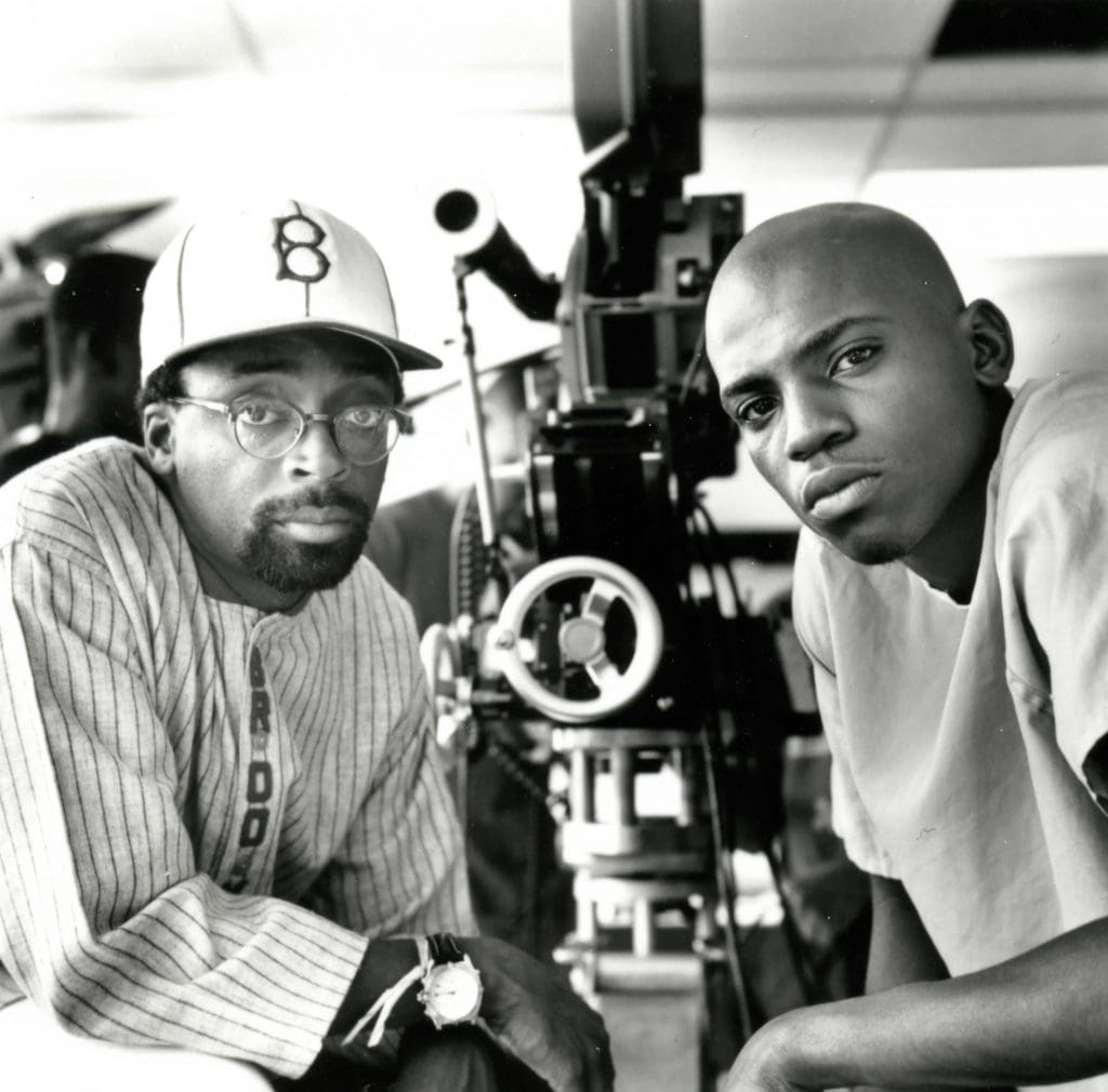 Mekhi Phifer and Director Spike Lee on the set of the movie Clockers, 1995
