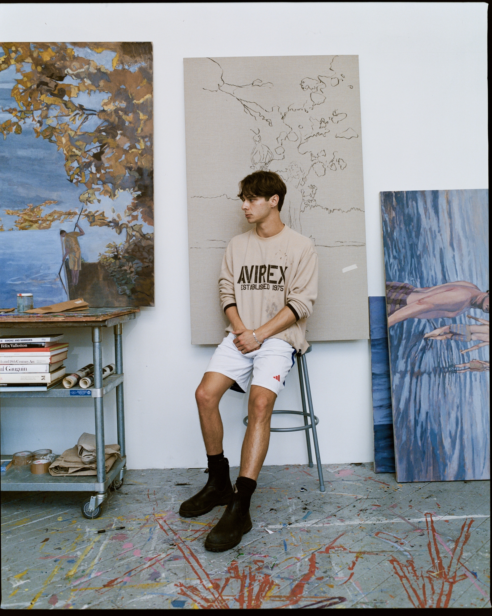 “My artistic evolution is about getting close to my own body.” Based in Brooklyn, the 26-year-old painter Emil Sands—known for his oddly dark coastal scenes—has created an artistic language based on embodiment and vulnerability.