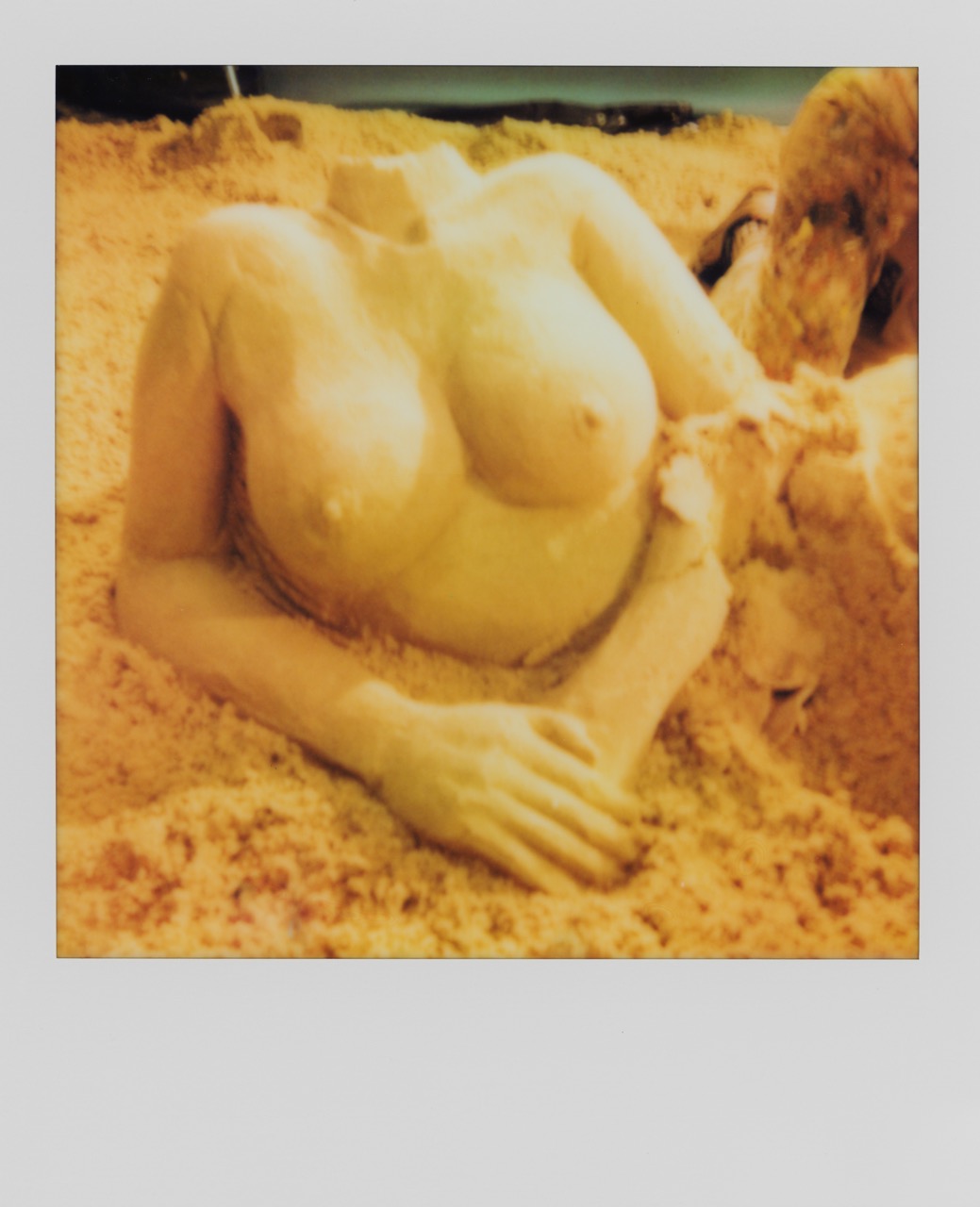 The kind of film and photography I’m drawn to usually demands a high level of production, which in the past has meant having to learn how to create big worlds with whatever resources are at hand. The eras I love to work within are tricky to recreate without certain essentials, one being hair, which is the centre of gravity in almost every project I do and the unsung hero of my work. Early in my career, I met my good friend and “hairy godmother,” Sarah Wood, a master of wigs and styling, who I have worked with ever since and has adorned the head of every character I’ve gone on to make. In tackling the challenges of this year’s series, I had the pleasure of working with some incredible creatives including our amazing sand sculptor, Nicola Wood, who spent 5+ hours constructing an exact replica of my body out of 2 tonnes of sand. Working with a team like this not only makes it physically possible but is one of the most enjoyable elements.