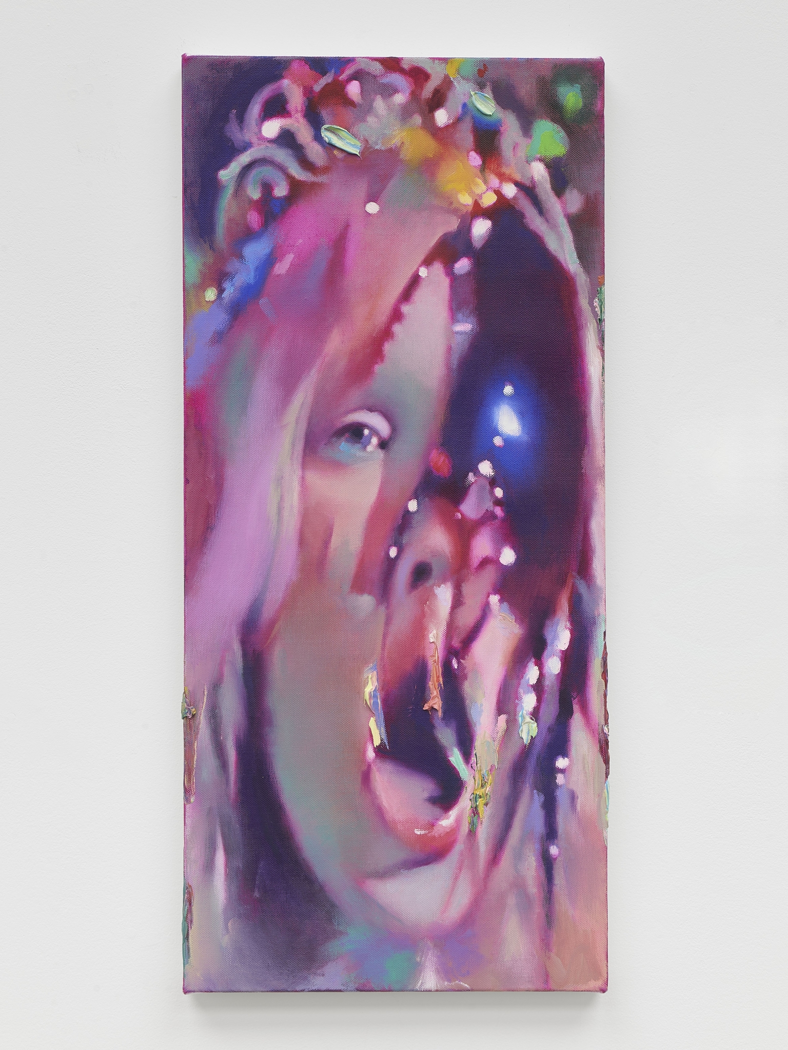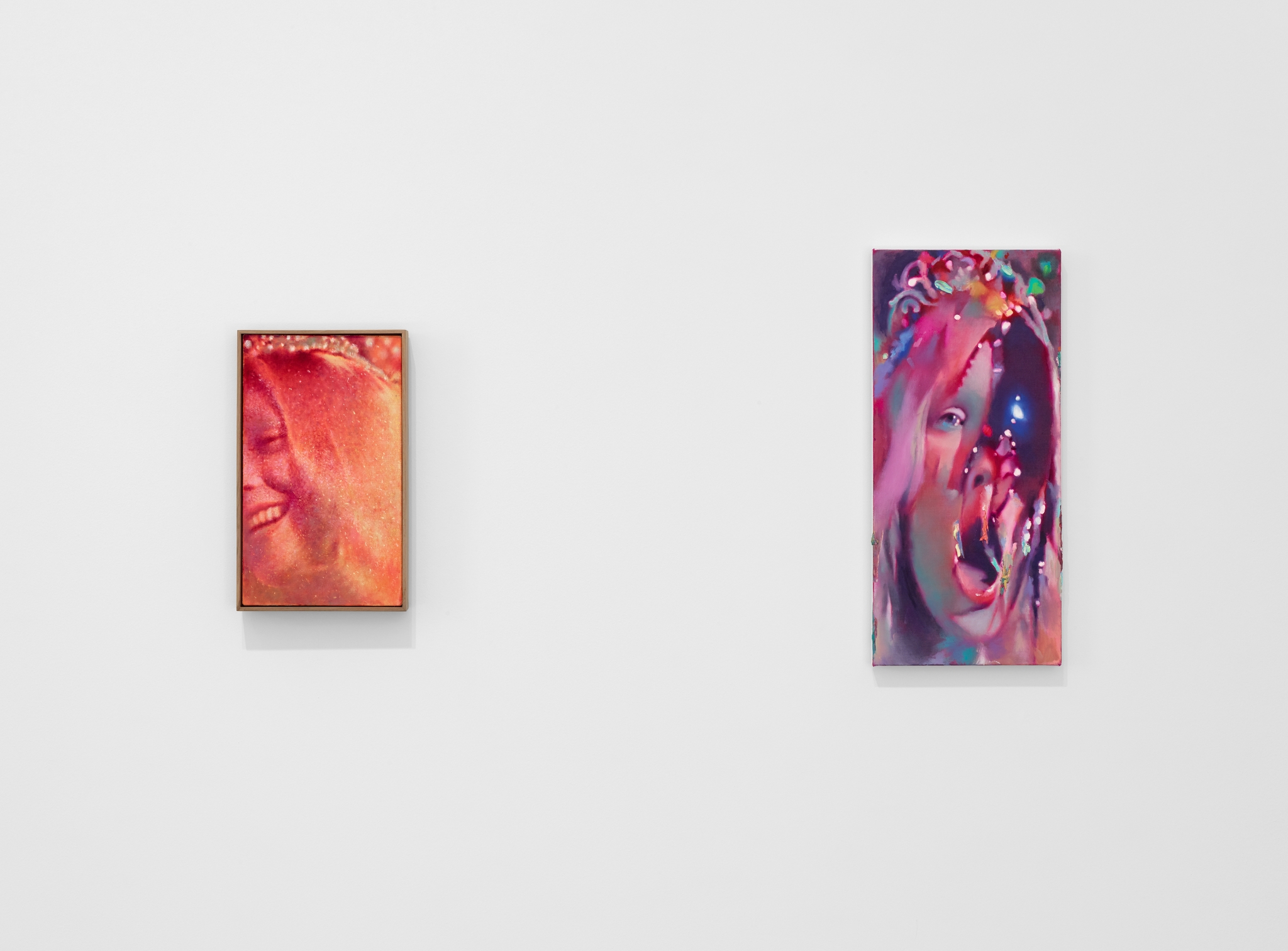 LG: Carrie encapsulates a lot of ideas I’ve explored through separate series, all in one iconic image. I just talked about the idea of the glitz and glamour, the pop star, and that is really conveyed in Carrie with her being this prom queen: she’s on stage, there’s this theatrical element, she’s being crowned—we’re worshiping her in a sense. The whole idea of a prom queen is that, a contemporary version of going to church, crowning someone like the Madonna: it’s the same idea, augmented for our current configuration of society. What’s interesting about Carrie, and what I enjoy in my paintings, is that emotional ambiguity, the joyful, celebratory nature turning very quickly – she thinks everyone is celebrating her, then it changes radically and becomes horror, the exact opposite. How quickly that can change is something I’m really fascinated with, and I wanted those paintings to convey the subtlety between emotional states. I do that often in my female portraits, where it’s not clear what’s happening, what they’re feeling.