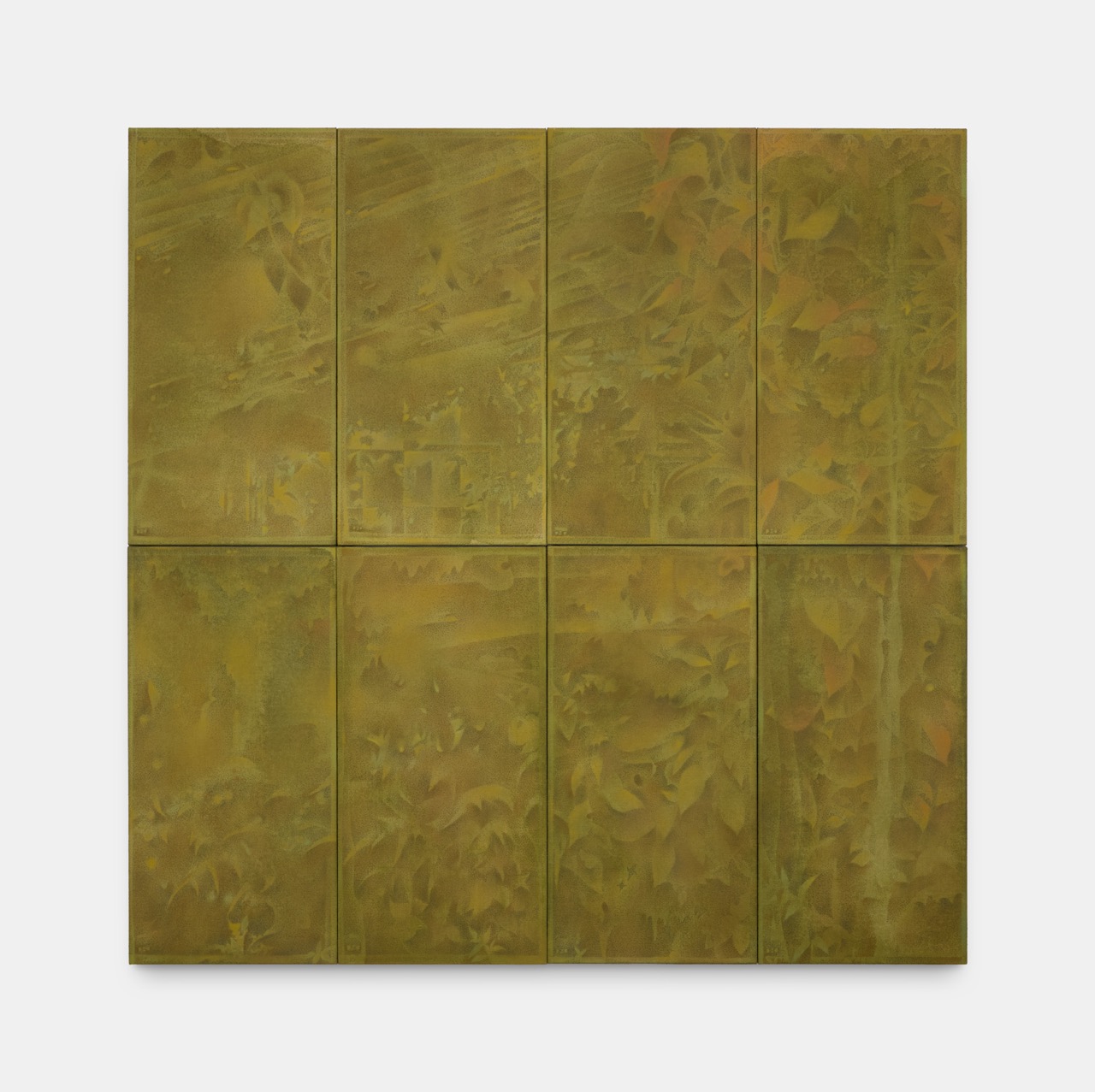 In my painting, each panel is drawn from the size of the glass wall in Waterlily House, in Kew Gardens, or the window size of Derek Jarman’s Cottage. I use these specific sizes because I want to create an entrance that allows the viewer to feel a part of that place.