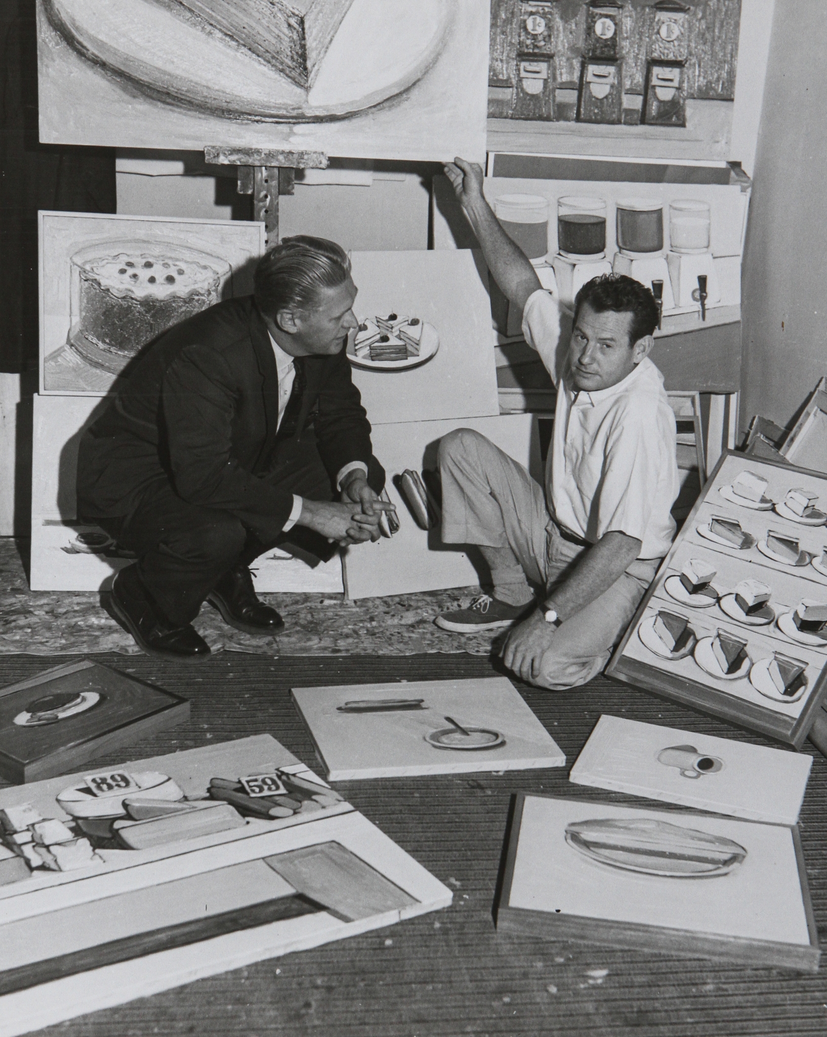 Wayne Thiebaud in his studio in Sacramento with Professor Paul Beckmann, 1962. Collection of the Wayne Thiebaud Foundation. © Wayne Thiebaud/VAGA at ARS, NY and DACS, London 2025.