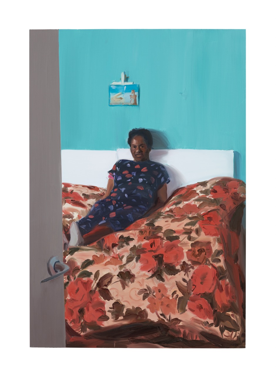 The first painting I made was of a woman called Joy, the only subject who had been granted refugee status and given a flat. She’s sitting on her bed, looking directly at me. I’m positioned in the doorway. When I finished it, I realised it was essentially a portrait — something I’d always avoided. Portraits felt too specific. But I also realised it might be the most powerful work I’d made.