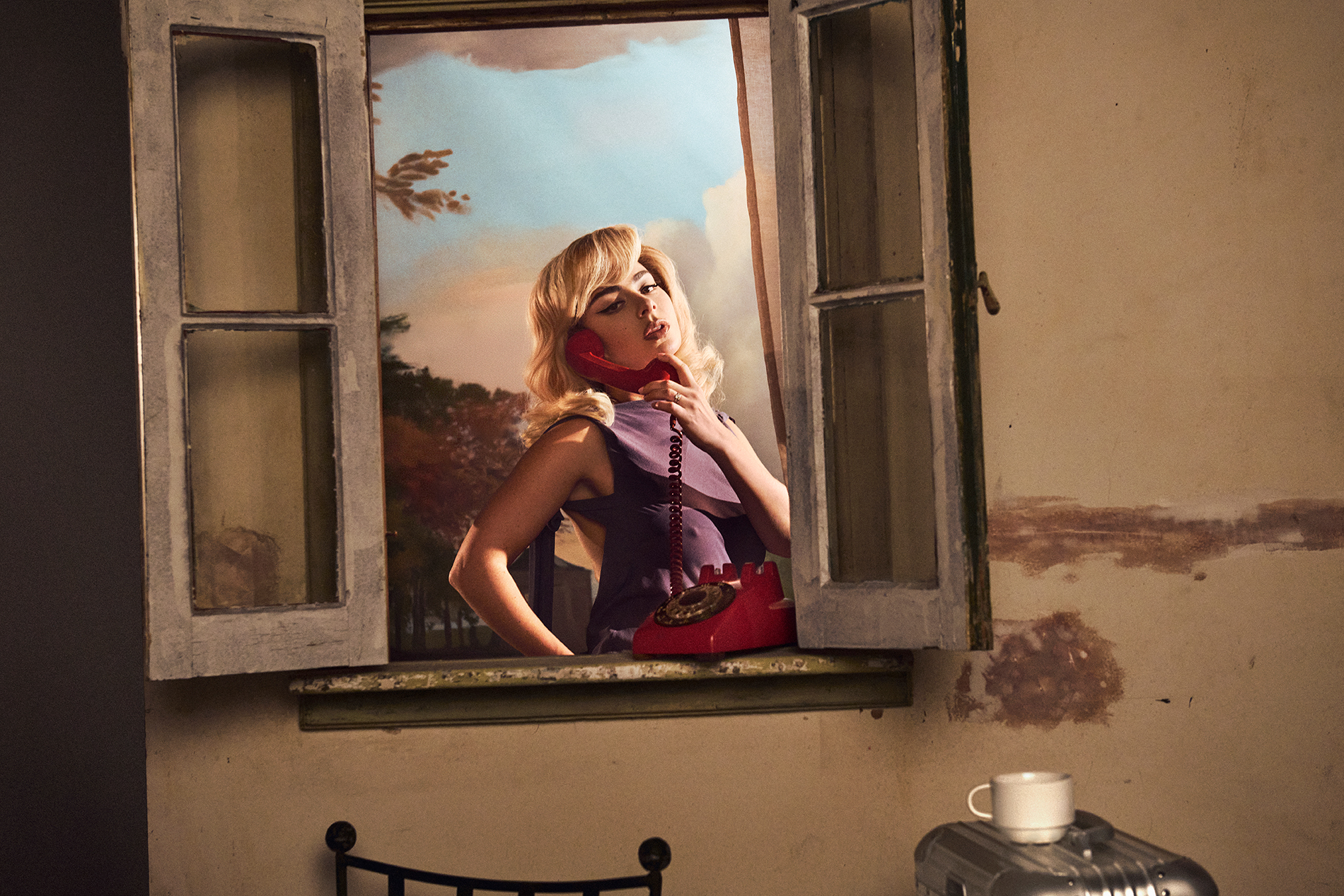 Yesterday, Charli tells me, she watched L’Avventura (1960) for the first time in preparation for this shoot (one look returns to the blonde and forlorn Vitti standing by a wall): “We went to the same locations [in Sicily] during the honeymoon. I wish I’d seen it sooner. We could’ve screened it there.”