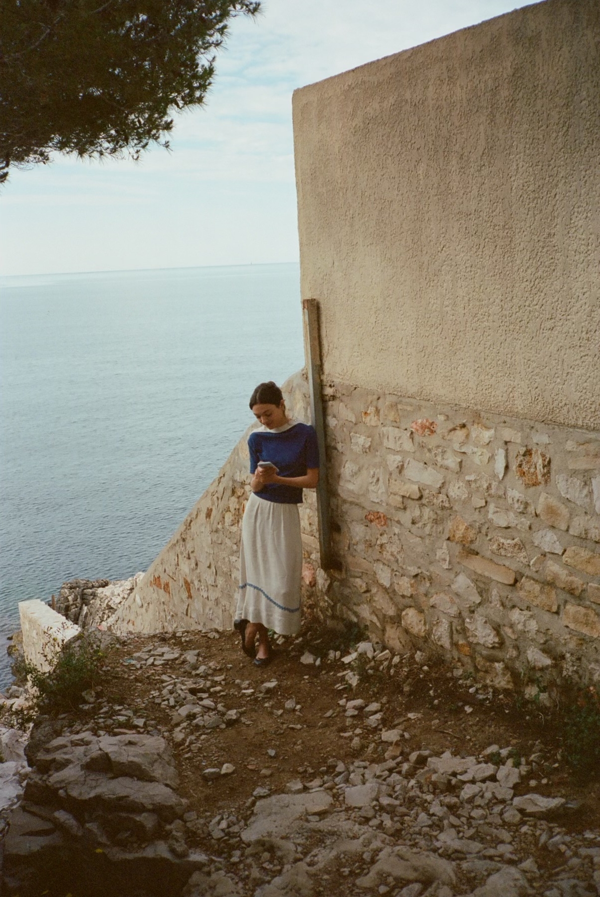 I don’t remember the first time I read Bonjour Tristesse. I was much younger, I don’t think it left the biggest impact on me—it was just a book that everyone was reading. For a lot of people there are certain books which arrive at a certain period of time. Everyone was reading The Catcher in the Rye (1951) when they were 13 or 14 and it was given to you by an aunt or something. When my producers reached out to me to adapt it as a screenplay, I knew I had to revisit it. It wasn’t going to be fresh enough in my mind to just start adapting it from memory. You know how someone will tell you a memory from childhood, but you’ve seen it in a photograph, so you’re not totally sure if it’s your memory or the photograph? I’d also seen the Otto Preminger adaptation of Bonjour Tristesse (1958). I love that film. So there’s this weird mix of the movie and the book in my memory.