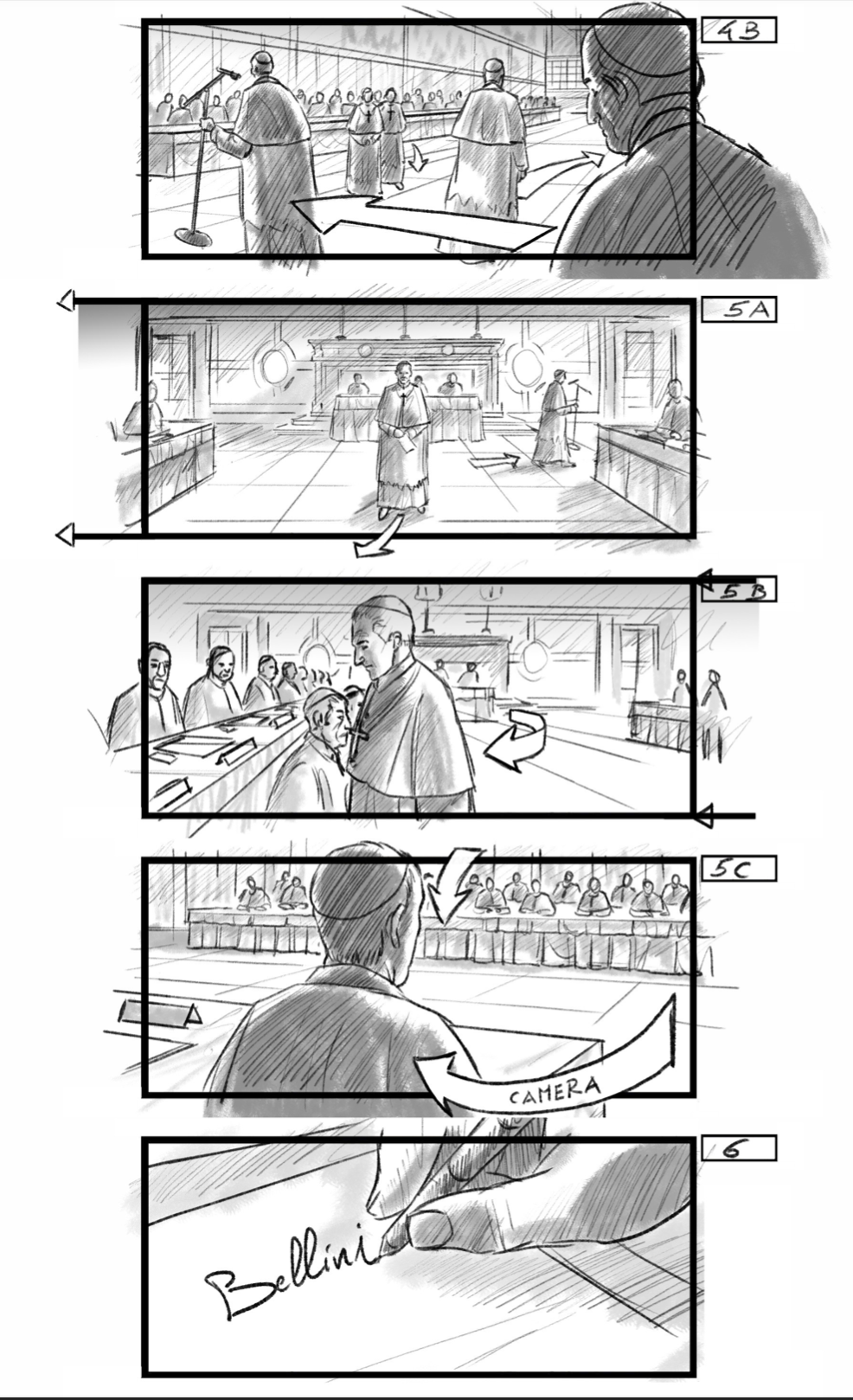 And then there is silence. Time and images to rest your oral senses and a sea of red to stimulate your eyes. And I realise how obsessed I am with sound that orchestrates the looks exchanged by the contestants of my film. The placement of each foley, the accuracy of each sound effect. This has to be precise. No words—just breathing, shuffling feet, and scratching pencils. The swishing robes or humming fluorescents. Perhaps I pepper the silence with stabs of jagged music to shoot a jolt into the screen. To let me know what my cardinals hide behind their staring eyes, what they may feel inside their stomachs. But nothing has more power, nothing fills the air more, than the tension of silence.