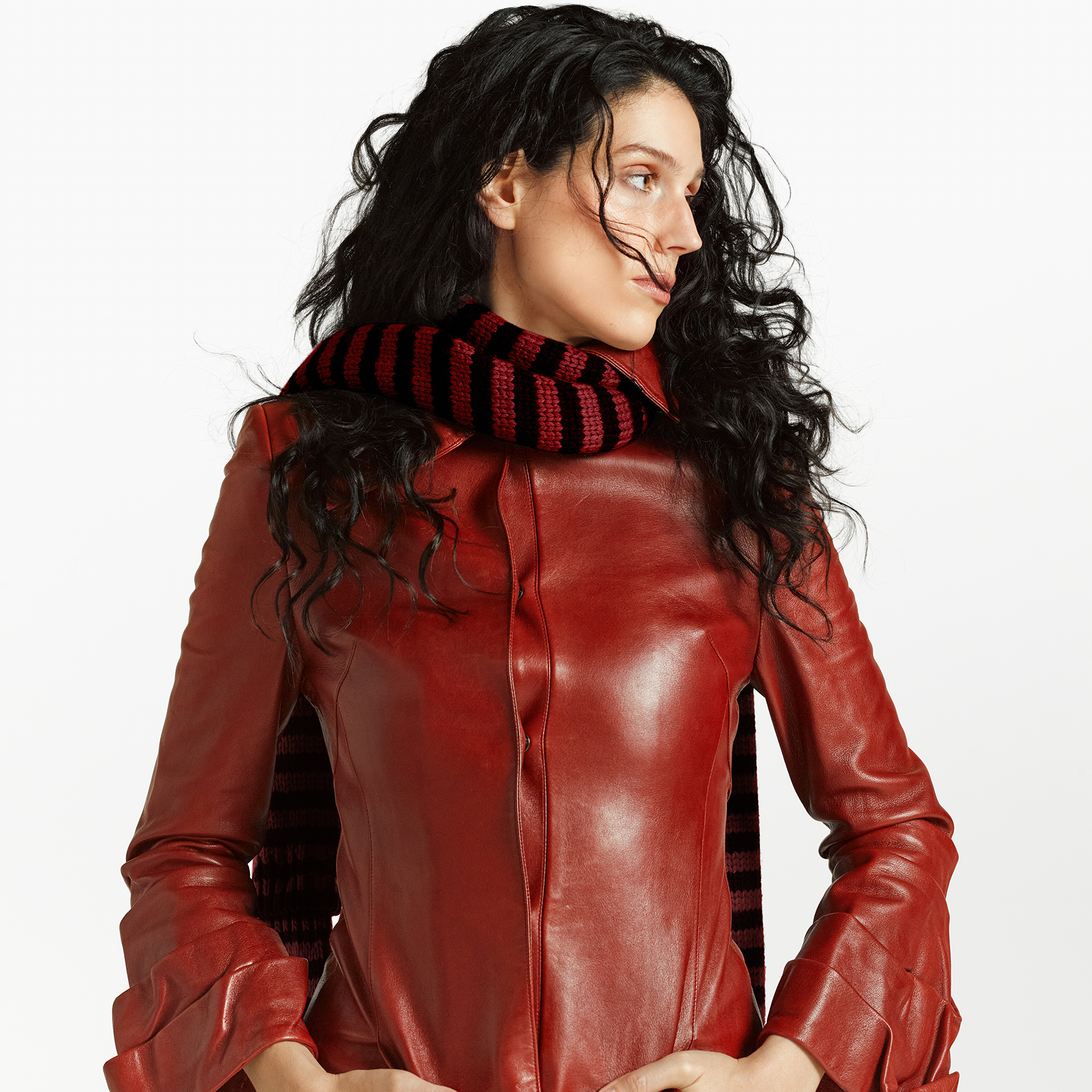 Look 2: Dominique Sirop 2004 red leather jacket (from Baraboux).