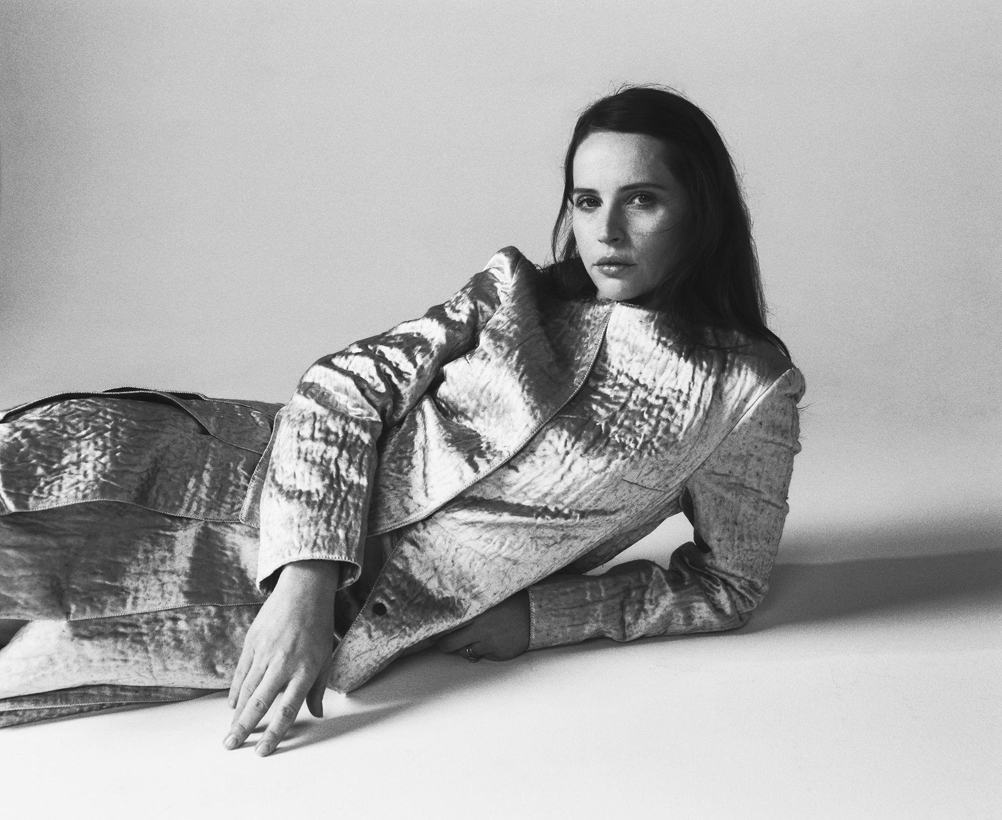 Felicity Jones is in her car, ready to go. It is early on a Friday morning and, when the actor joins our Zoom call and I see her in the front seat of a stationary 4X4 on a street in London, I initially wonder if she is hiding from someone. “It’s an unusual place for an interview,” admits Jones. “But sometimes my car doubles as an office.” Coffee in hand, the actor is wearing a khaki parka and a grey jumper. I can’t decide whether her cascade of brown curls is natural or blow-dried. The car, Jones explains, is “a diary necessity.” A fitting for the Golden Globes is next on the day’s agenda. Jones, 41, received a Best Supporting Actress nomination for her role as Erzsébet Tóth in Brady Corbet’s The Brutalist, and is predicted to receive the same at the Oscars—her second Academy nomination since Best Actress in 2015 for the Stephen Hawking biopic The Theory of Everything (2014).