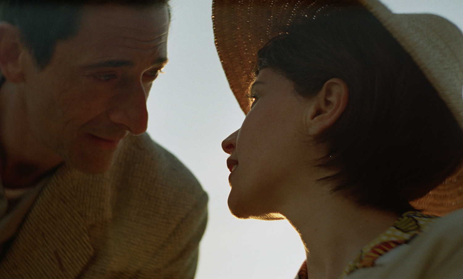 Erzsébet’s arrival embodies her in a very real way. She is accompanied by her orphaned, mute niece, Zsófia (Raffey Cassidy), who pushes her aunt down a train platform in a wheelchair—osteoporosis from incarceration in concentration camps has left Erzsébet unable to walk. László and Erzsébet’s reunion is now deafening with feelings of separation. “They’re having to under- stand each other again, reconnect physically, emotionally,” says Jones. When I ask her which scenes were the most challenging to shoot, she replies: “All of them” four times. Yet while the emotional scenes all ran “like clockwork” the scene that was most technically difficult to shoot was one where Erzsébet and Zsófia are walking to catch a bus and are picked up by Van Buren, the man who has commissioned her husband to create a community centre in his name. A small moment, it also reveals the Erzsébet’s bind, “negotiating their need for his patronage versus her sense that he is a problematic person.”