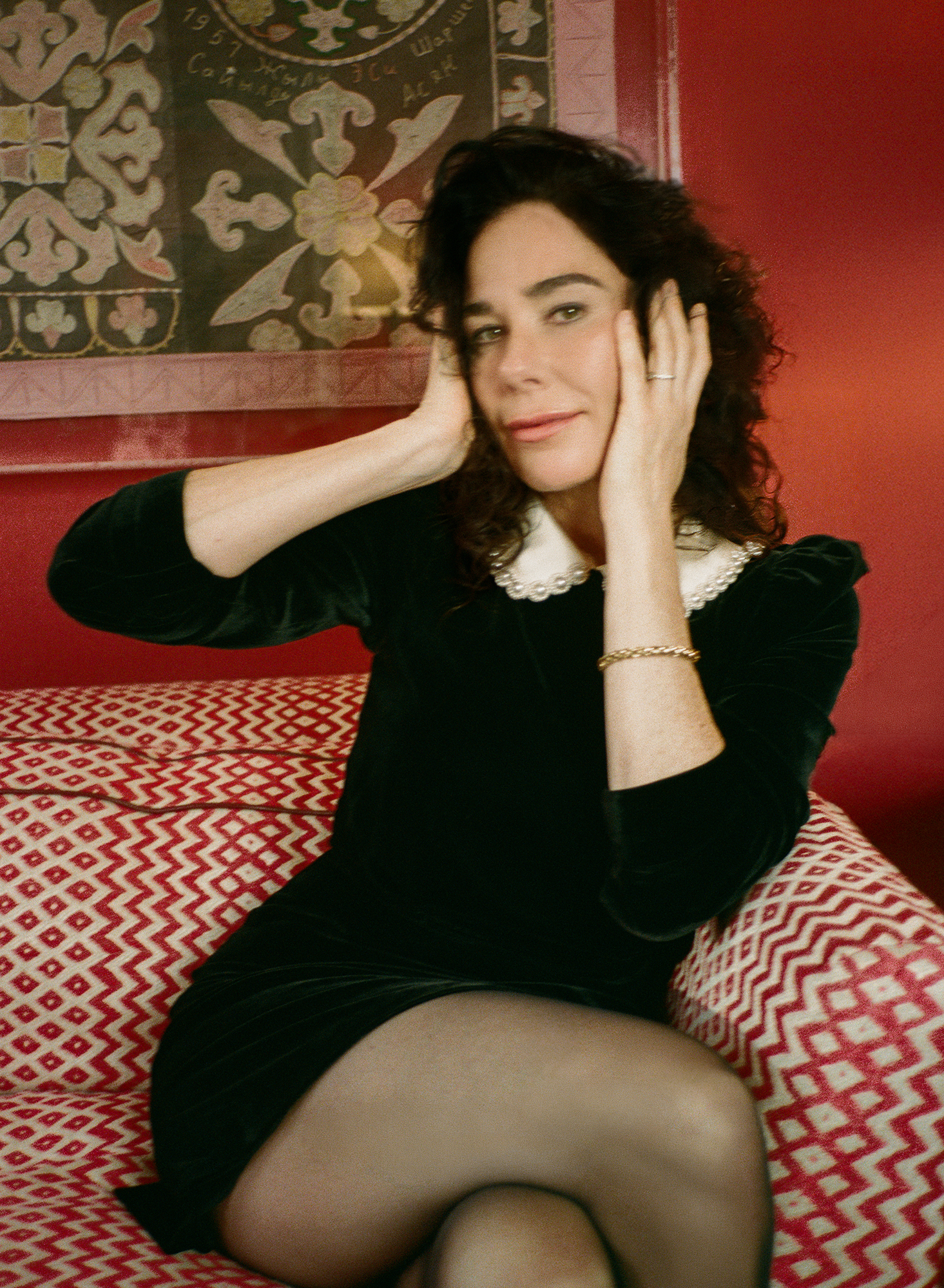 It only takes a quick Google search to discover that being raised in communes is a biographic detail Romy shares with the film’s director and writer Halina Reijn, who I speak to in a pinky-red jewel-box room of the Soho Hotel in London. Reijn, 49, is wearing a short velvet dress with a Peter Pan collar and long black leather boots (styled herself, she admits proudly). Romy is indeed an alter-ego, and she describes the paradox of her upbringing by radical hippies in a Pippi Longstocking village in the Netherlands. “I was a product of the sexual revolution, my parents were super involved in all that, but I find it interesting in my life that sexuality is something I suppressed instead of feeling at ease with,” she explains, in her assonant Dutch accent. “And I think that goes for a lot of women, where we are not at ease with the beast inside of us. Romy has to learn to accept that part of herself. Because when you suppress it, you will start to do things that are risky, like having affairs.”