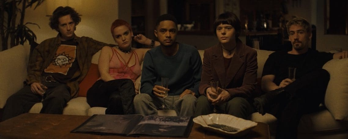 Knox: I was super excited by the fact that it was set in the late 90s and early 2000s because I had been watching a lot of band documentaries, like Dig! about The Brian Jonestown massacre. It’s so rich and full of interesting cinematic visual language, and I wanted to bring that to the script. We needed to be able to nail that cinematic language that for me was so present in Dig! and Oasis: Supersonic, which illuminates the chemistry between the band. You watch those and you can tell that these people have been smelling each other’s farts in vans for months and months at a time. We needed that realistic dynamic between our five actors, who are meant to be bandmates who had grown up in a small town together.