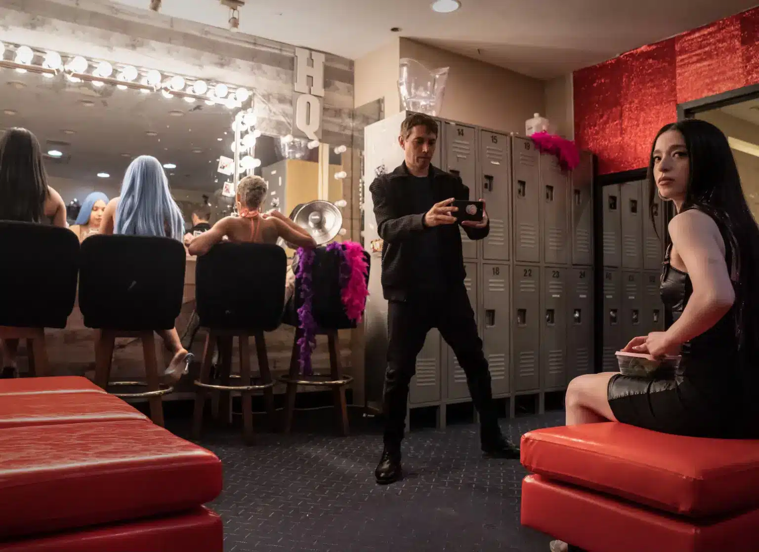 SB: I loved watching you take on Ani’s hustle, and how that changed ever so slightly between each client. The way you’d drag one guy to the ATM, very blatantly like “Let’s get your money”, and another guy you’d be very gentle with, like “Oh, you’re a hard worker? Yeah? You wanna go to a private and tell me about it?” [laughs] Because that’s what someone in Ani’s position needs to do. It’s a skill to be able to adjust the hustle accordingly, and Mikey was very aware of giving us a version of each possible scenario.
