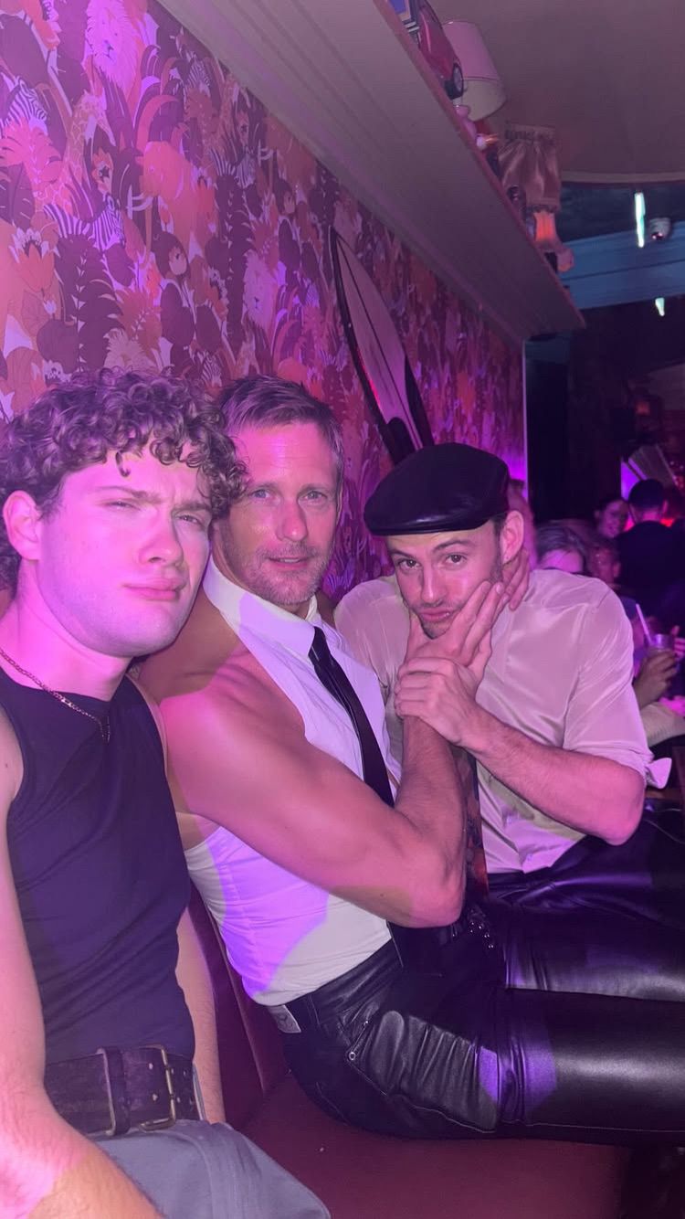 Harry Melling, Harry Lighton and Alexander Skarsgard on set of Pillion (2025).
