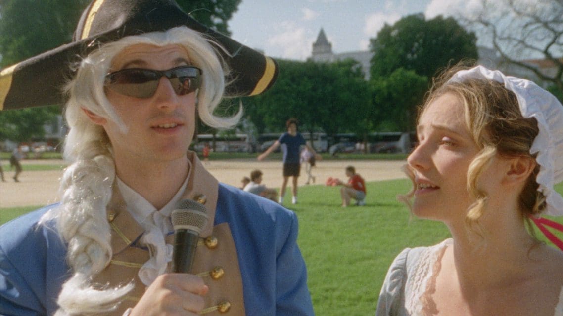 NP: Yeah, we did this road trip specifically because we were, I guess, trying to huff up some atmosphere in various locations in the script. And a lot of that actually did work its way in. So, like, for example, the scene where Talia is wandering on the mall in Washington, D.C., and she goes by this line of ice cream trucks that are all playing [Scott Joplin’s] The Entertainer at all these different speeds. That’s like a very specific sonic environment that we wouldn’t have known had we not gone down there in advance. Peter Beck and Betsy Brown dressed as George Washington and Betsy Ross singing Simple Gifts.