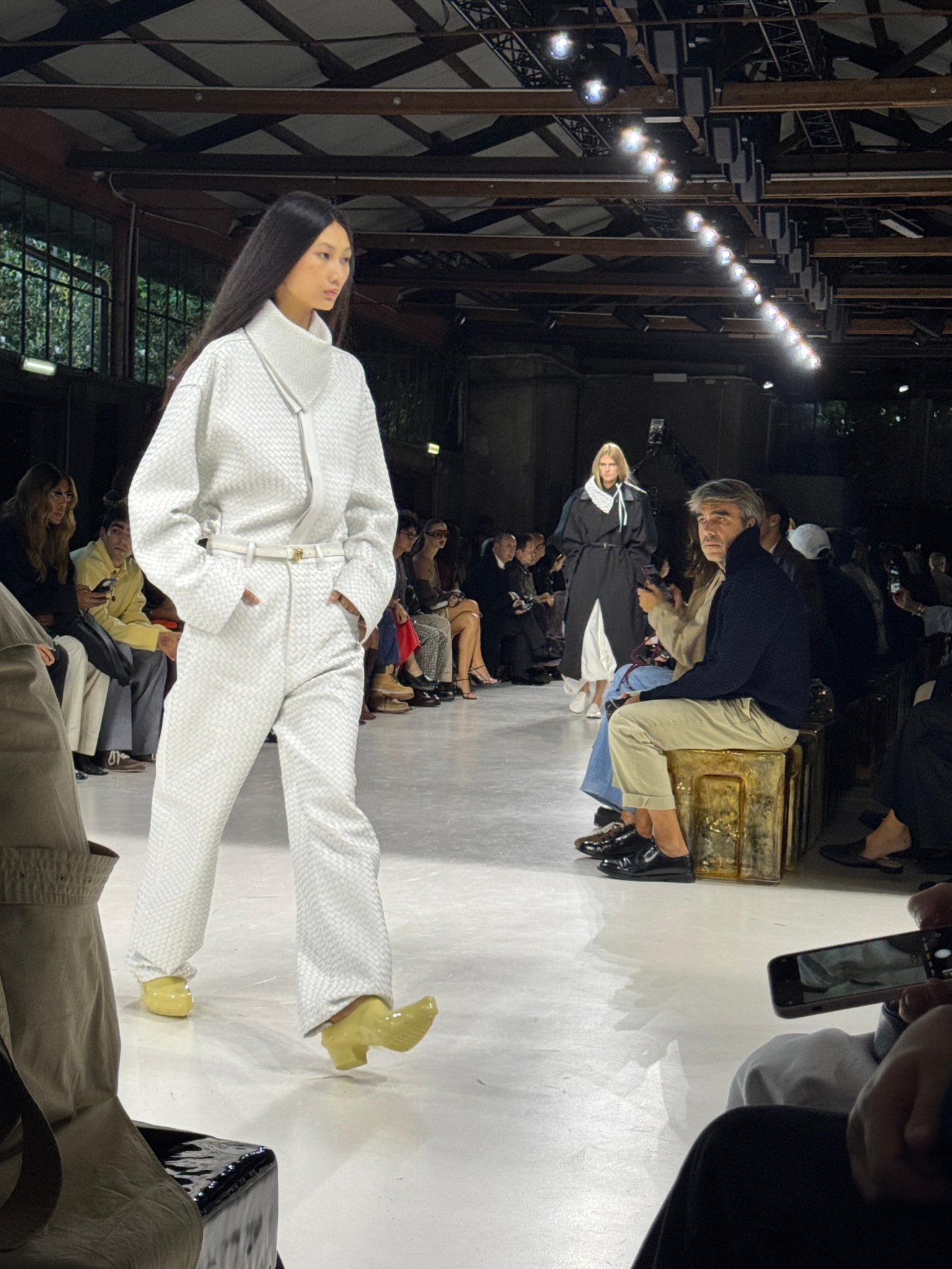 Taking place on Saturday, the Bottega Veneta show certainly feels like the MFW finale (with the only major event to follow it being the Giorgio Armani show the day after). Bottega takes place at an old warehouse in the same neighbourhood we are staying. The industrial setting—while perhaps hard to avoid in a place like Milan—is nonetheless intentional. “I like that [a] ‘Bottega’ is a workshop — one with a long and multifaceted history in Italy… It’s where the hand and heart become one,” said Trotter in the introduction to her show notes.
