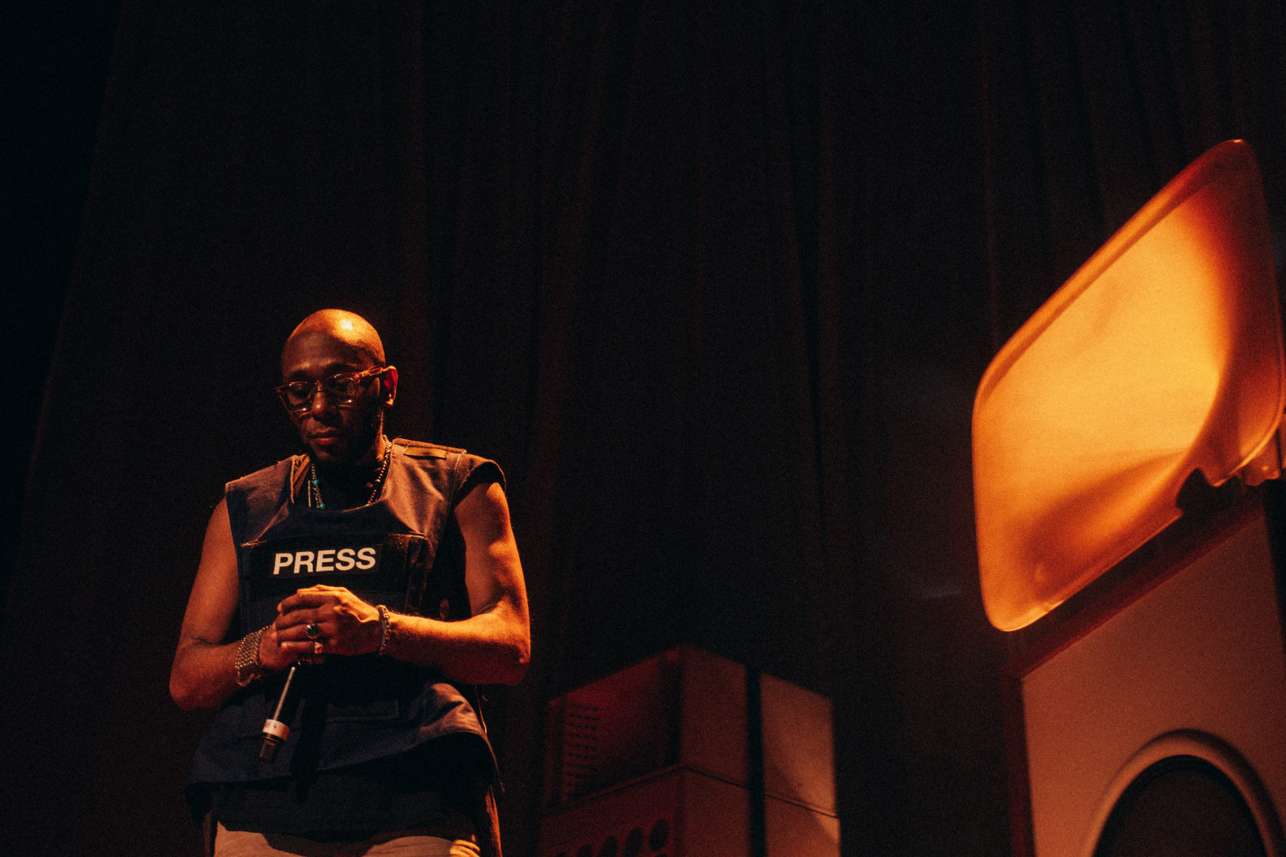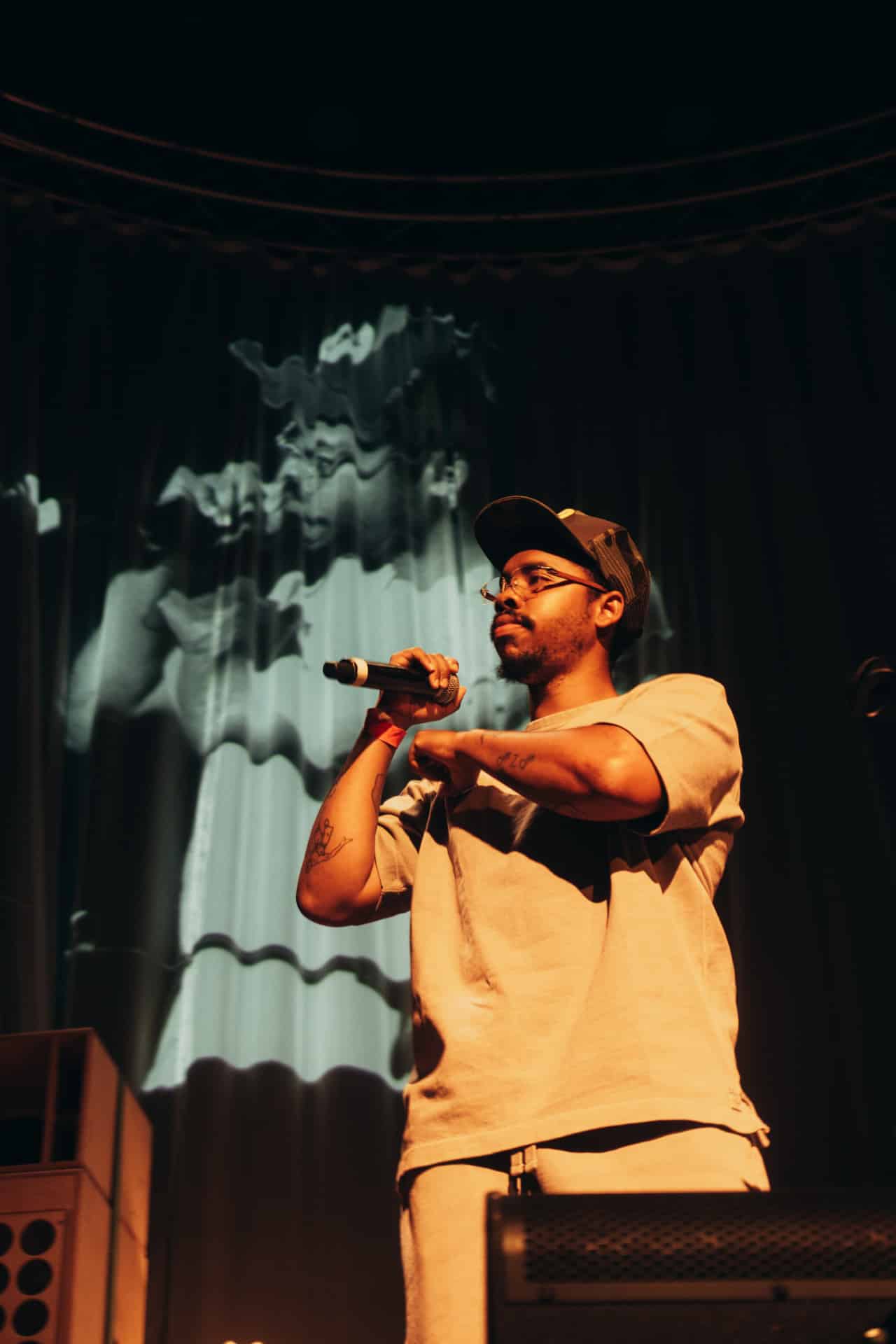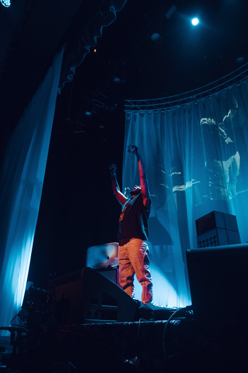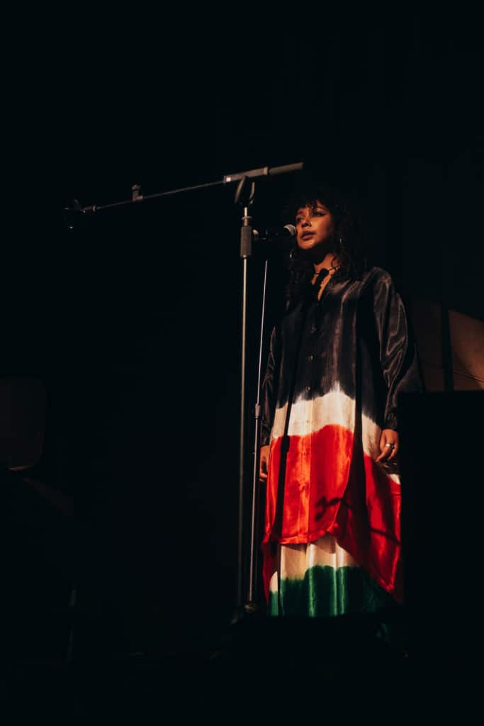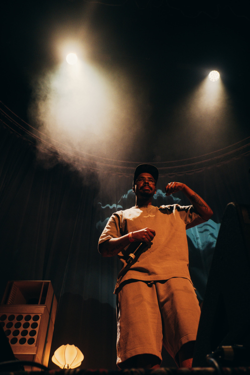 Each musician performed ten to fifteen minutes of material (around three or four songs) before making way for the next musician. The golden exception to the rule was legendary rapper Yasin Bey (otherwise known as Mos Def), who not so much played, but exorcised twice as many tracks as the rest of the lineup, storming the floor with the kind of thunderous stage presence that comes second nature to a performer who’s been rocking crowds for decades now. “Free Palestine! Free Sudan! Free Gaza! Free Wifi! Free Love! Freedom!” the veteran rapper incanted, the audience in turn echoing his sentiments powerfully.