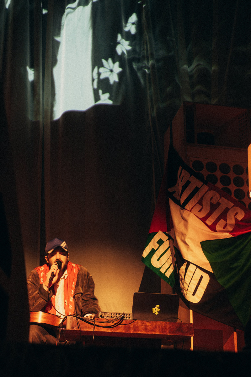 Though music was at the heart of the event, the setlist also made room for moving interludes of poetry and even comedy; Sudanese-American poet Safia Elhillo took to the stage in the colours of both the Palestinian and Sudanese flags to perform a powerful spoken word piece and intimate ode to the struggle in Sudan, while comedian and actor Ramy Youssef (our interview with whom you can find here)—who was admirably outspoken in his support for Palestine during the past year’s awards season—brought some levity to the room, vamping about the UK election. “Today you guys had your election, I’m really happy for you.” He smiled, playfully baiting the crowd “You feel good about it?” The audience replied in unison, quickly building into chants of “Keir Stamer’s a wasteman”. Youssef plays along. “Oh, a waste man. Shout out to the waste men.”