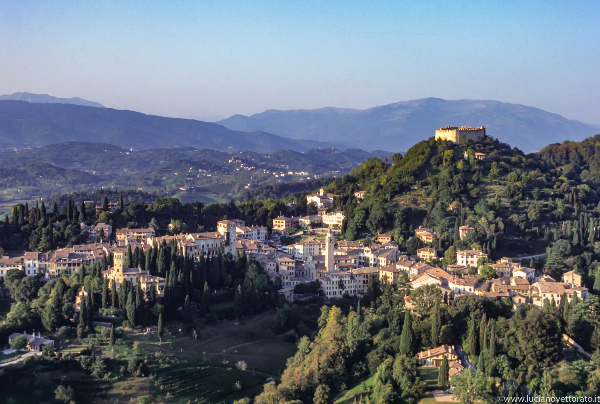 The approach to Asolo is unassuming, but at a certain turn in the road, it appears: half-hidden villas nestled into the hillside, pale terracotta roofs, tall silhouettes of cypresses, and a faint shadow of purple mountains in the distance. Freya Stark described it best: ‘You never saw anything so lovely as Asolo now […] I came up by a little hill, quite tiny, and grown all over with very small trees bursting with fat bunches of blossoms […] The only adjective for this landscape now is gentile.’ Asolo is a place where everything appears in perfect harmony: the landscape is soft, the architecture modest, and the pace of life leisurely. Henry James wrote that there was ‘no sweeter place in sweet Italy’.