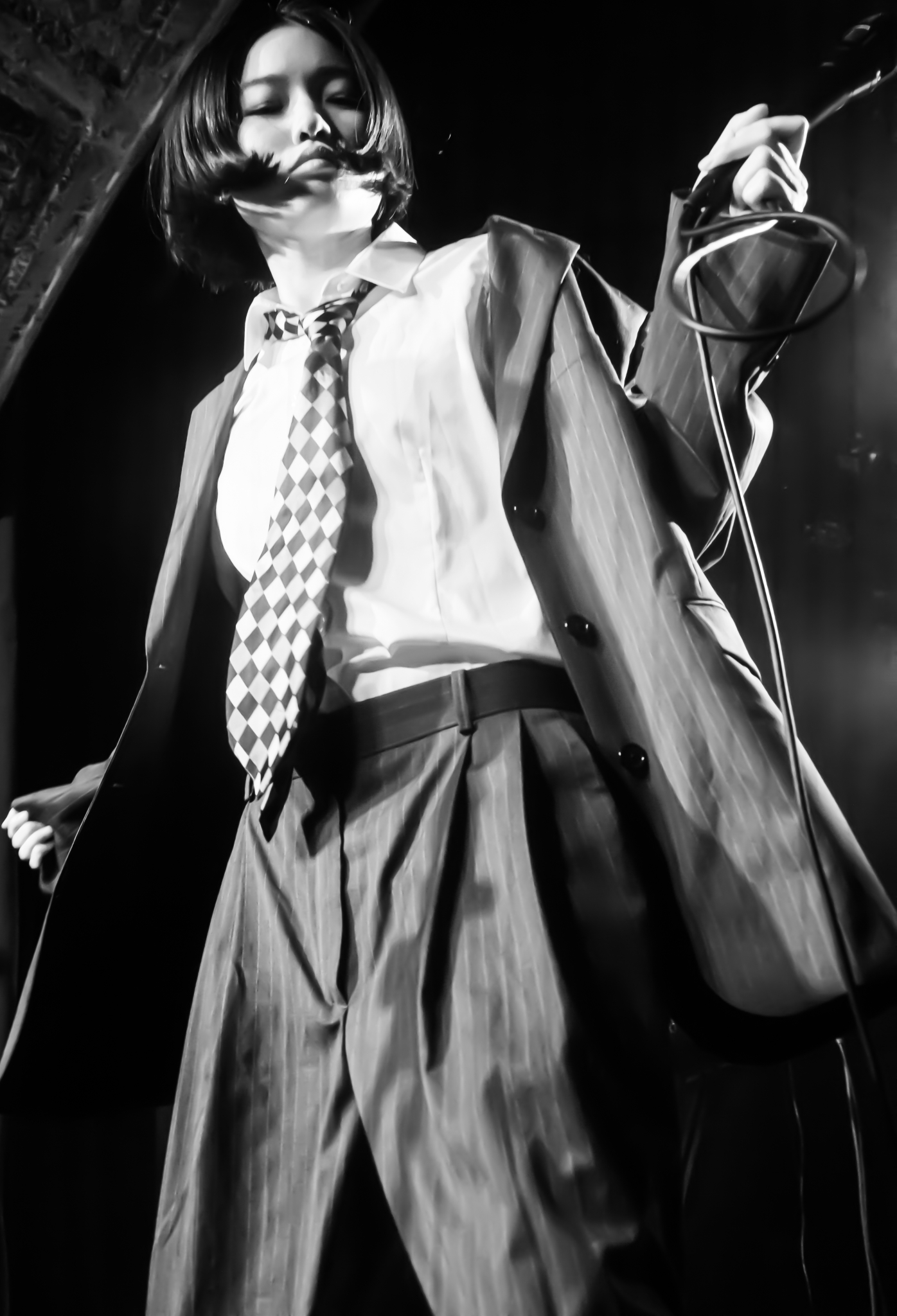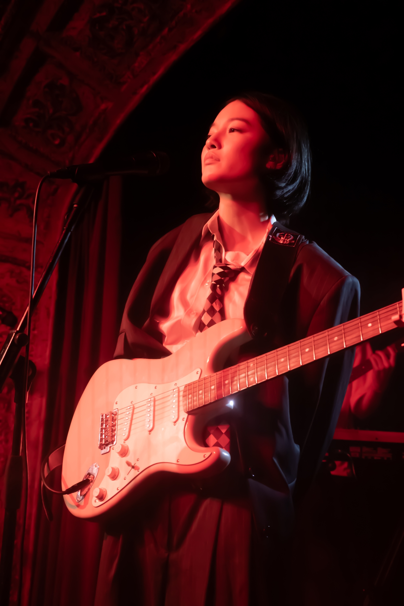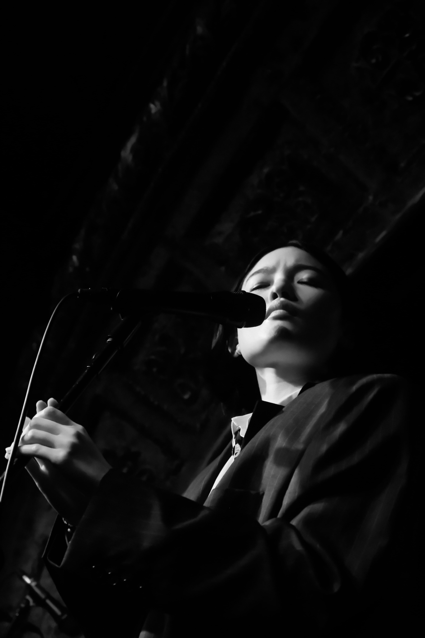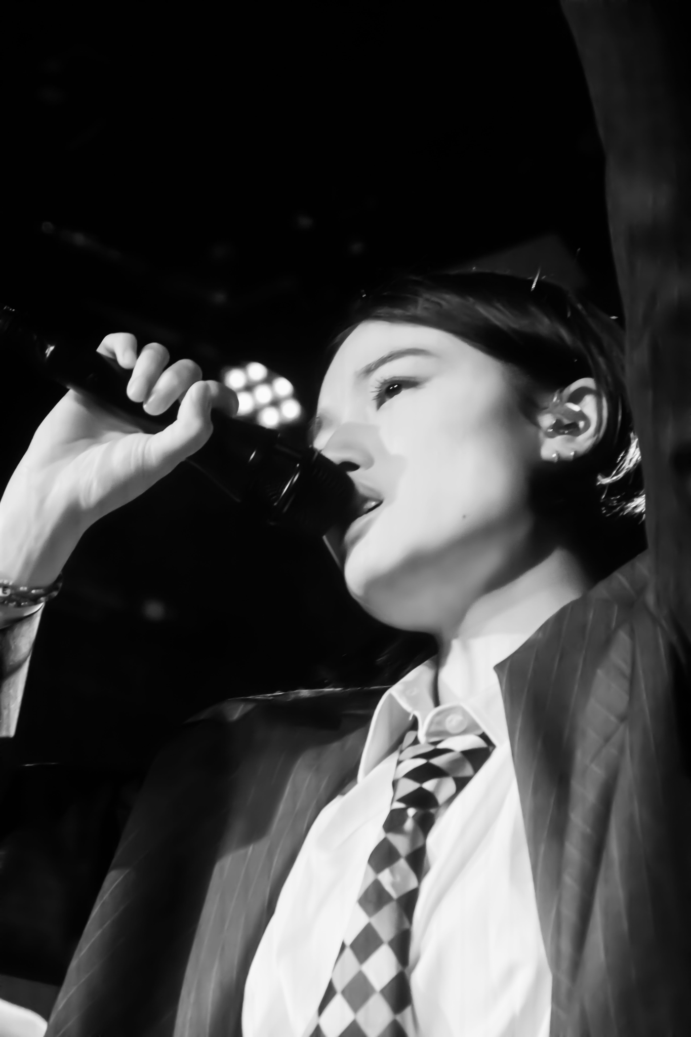 “Is it hot in here?”, Chloe Qisha pouts, a quarter of the way through her show at London’s OMEARA. The musician, playfully tugging at the collar of her oversized, pinstriped suit (à la David Byrne), is flirting with her crowd, and they, in turn, look just about ready to lay their lives on the ground for her. It’s the kind of onstage charisma and crowd-control you usually see from artists who have been on the gig-circuit for years.