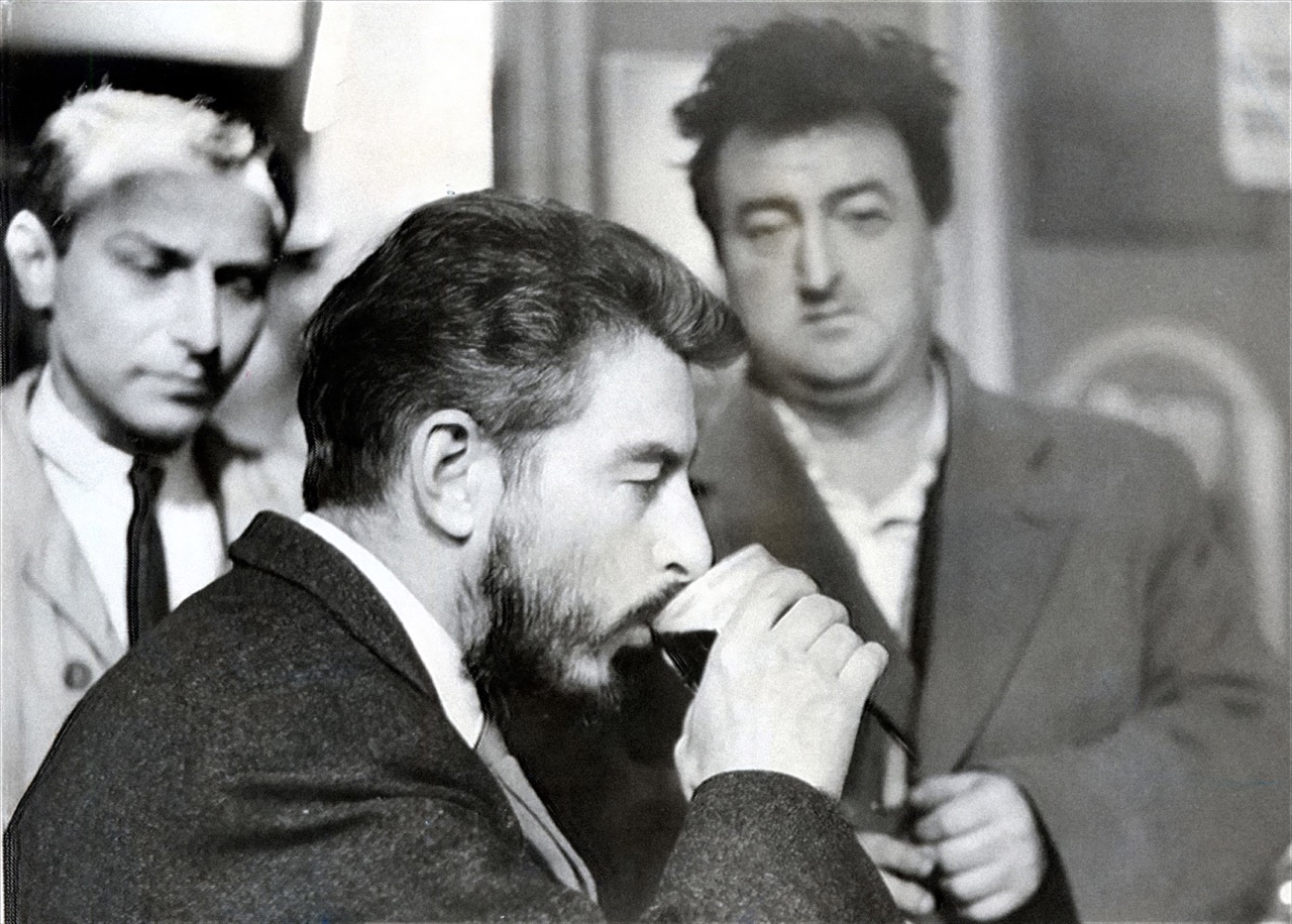 Donleavy (centre) with Brendan Behan (right) and director Philip Wiseman in Dublin, 1959.