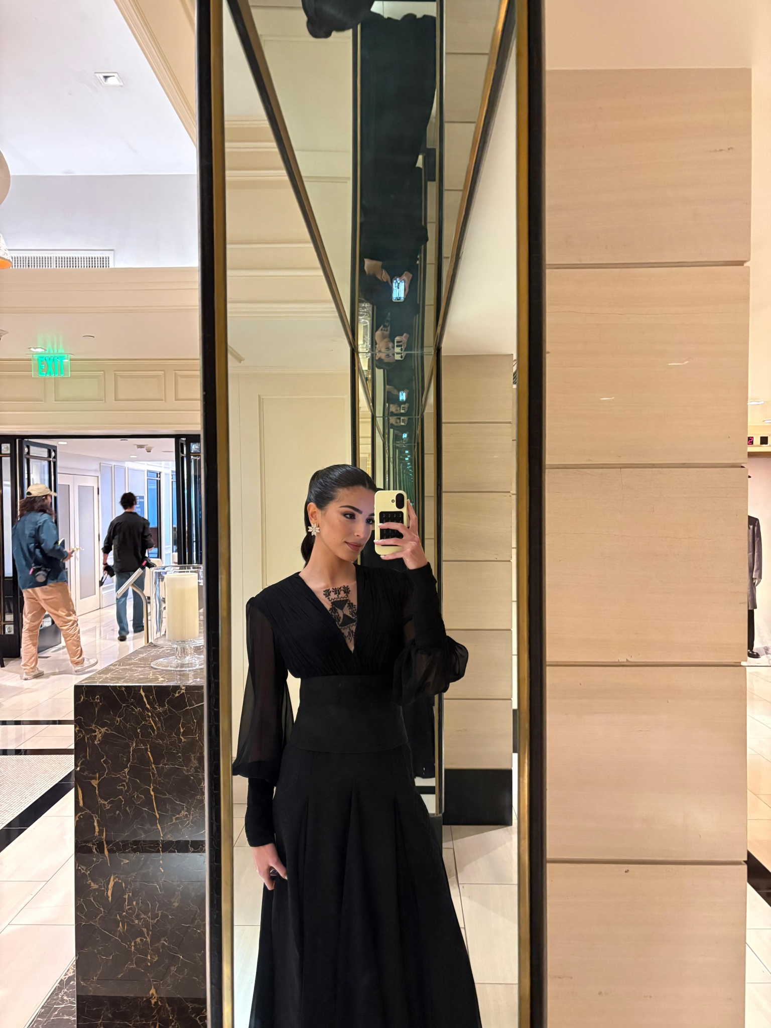 For the ceremony, which Saja attended with cast members, producers and director Kaouther Ben Hania herself, she wore a custom look by fashion designer Reema Dahbour, inspired by traditional Palestinian thobes and featuring beautiful necklace detailing based on ancient Palestinian techniques.
