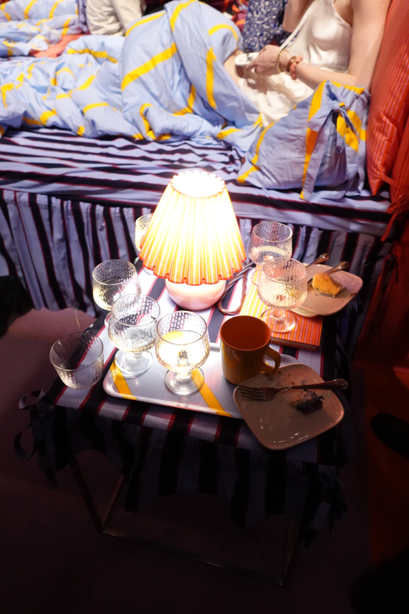 Just across town, Marimekko and food artist-slash-designer Laila Gohar bring an intimate scale to the grand stage of Teatro Litta. All the Things We Do in Bed merges 18 individual beds into one plush, salmon-hued landscape. Beneath a glittering chandelier, guests are invited to rest, lounge, sip coffee, and slip into Marimekko-designed pyjamas. It’s a quietly radical gesture: comfort as design, sleep as statement.