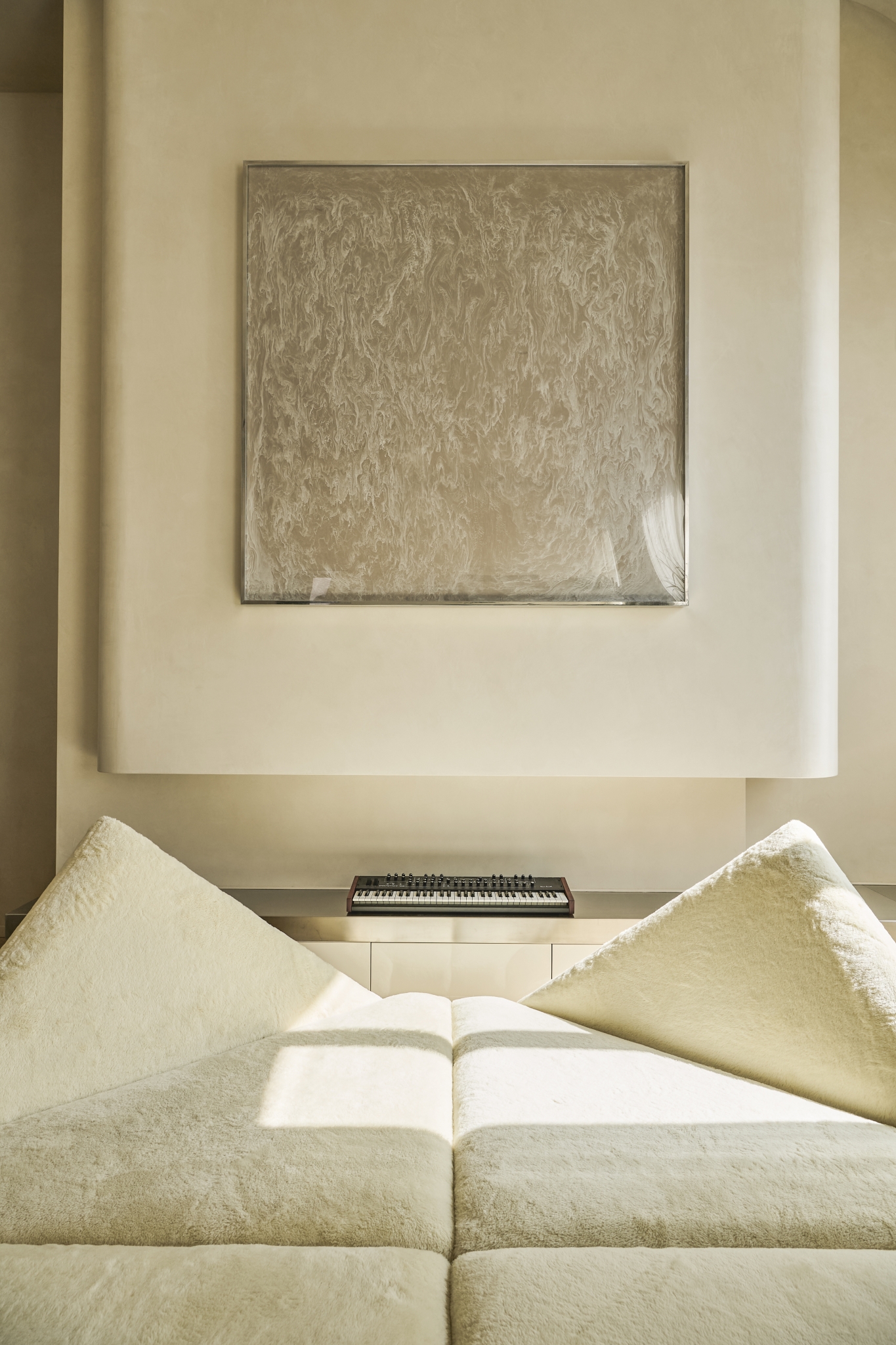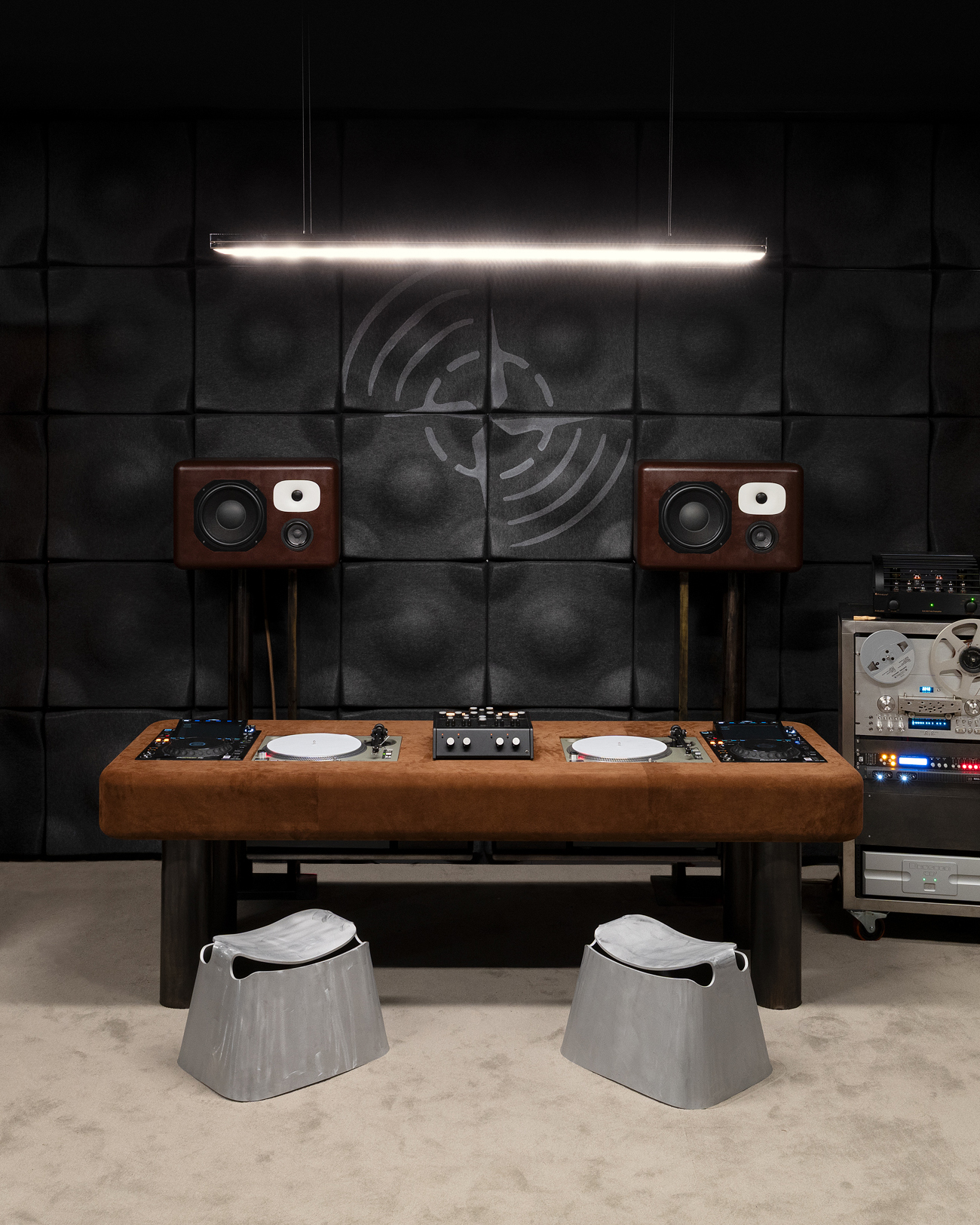 In a tucked-away Milanese apartment, Paulin Paulin Paulin stages one of the week’s most atmospheric takeovers with Sounds Like Paulin. The space is transformed into an immersive homage to both sound and form, with studio audio equipment sharing space with the brand’s iconic modernist furniture. It’s an environment that hums, quite literally, with presence. Every curve of a chair, every hum of the speakers feels like a continuation of Pierre Paulin’s original rhythm—a living archive vibrating with new energy.