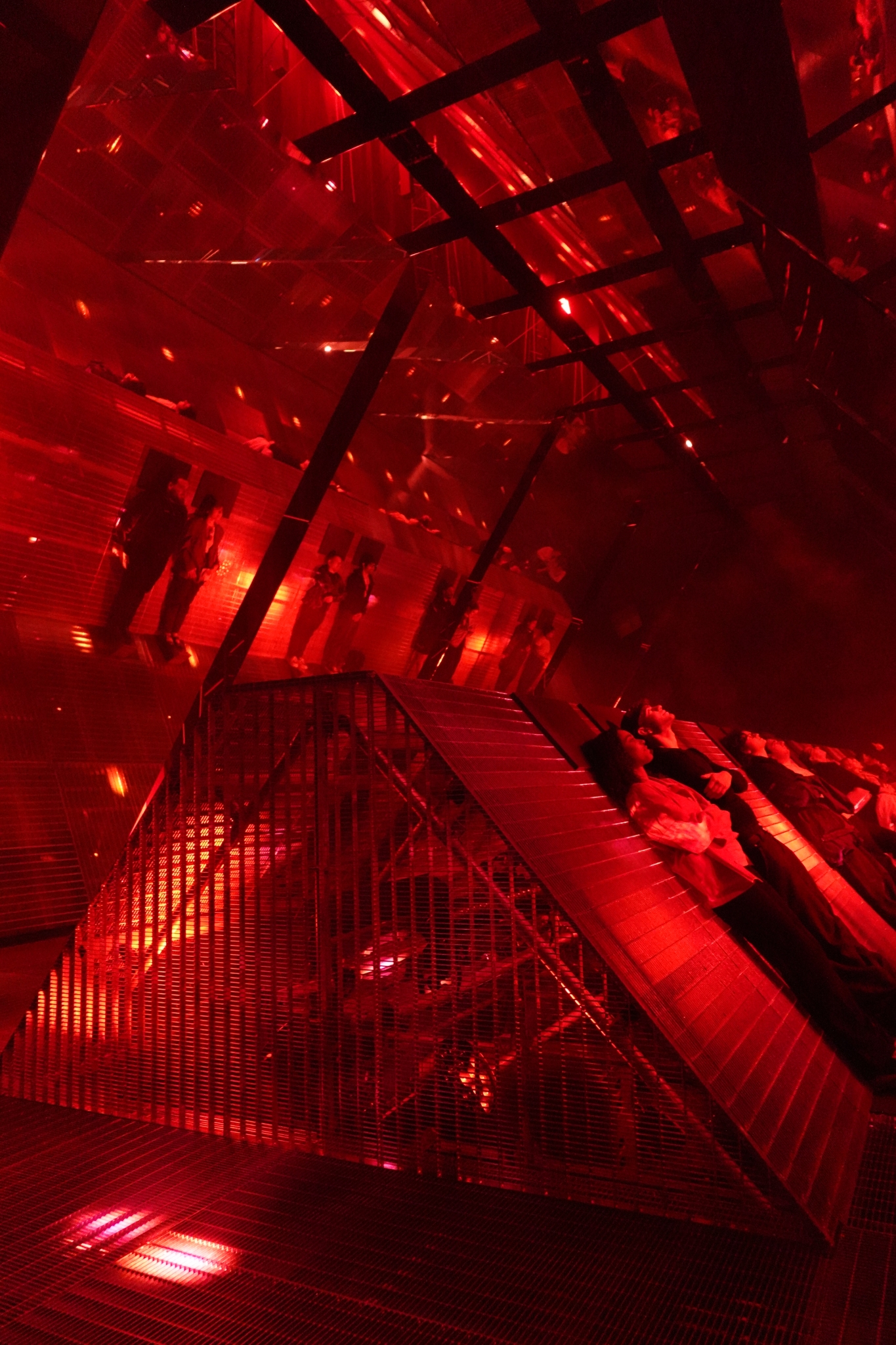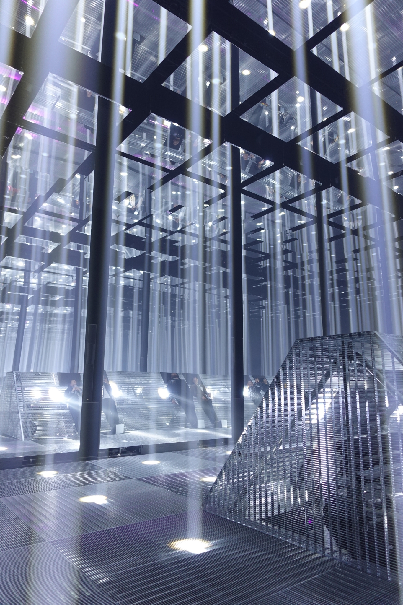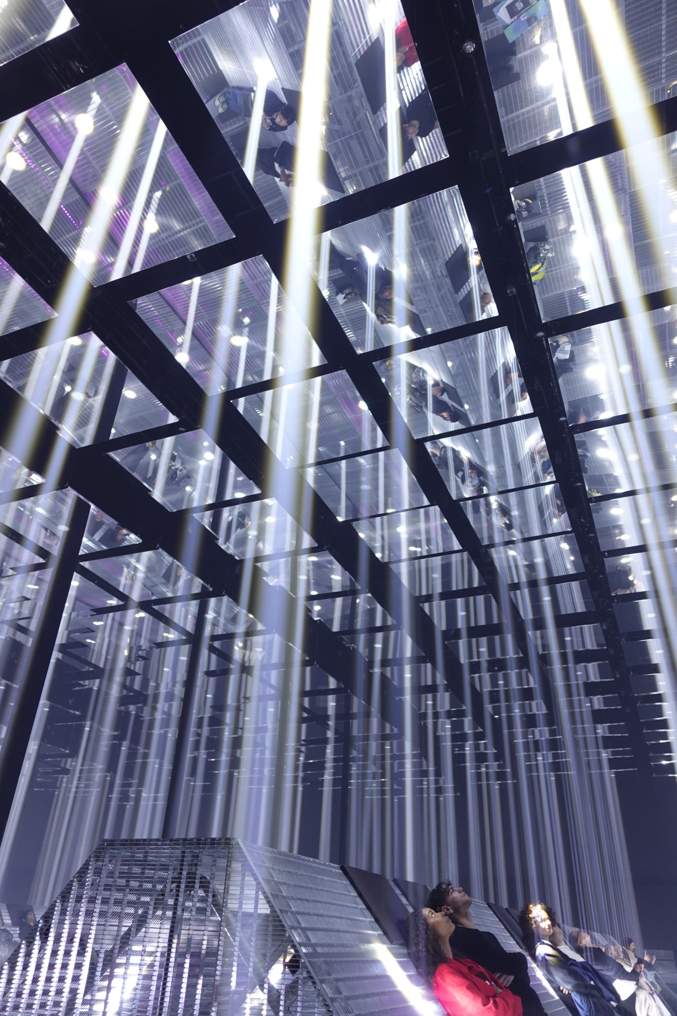 Elsewhere in the city, Vans and designer Willo Perron ask us to surrender to sensation in Checkered Future, a surrealist installation that begins with stillness. Reclined on a metal grid, viewers are drawn into an eerie choreography of mirrored panels and vibration, set to a spectral score by Tim Hecker. It’s a meditation on perception and pressure, turning the familiar Vans check into a hypnotic motif of reflection and disorientation. As the night unfolds, the energy shifts with Björk behind the decks, delivering an unexpected DJ set that transforms the space into an ecstatic dreamscape.