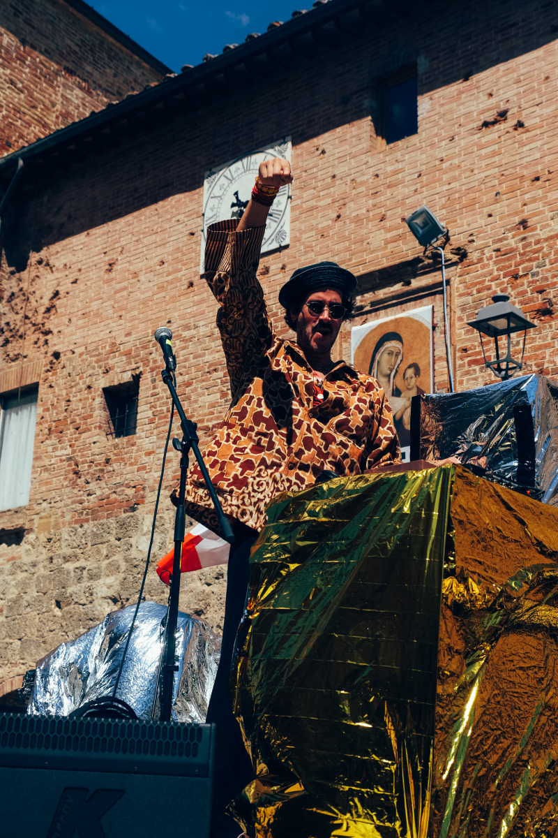 Last weekend, the sleepy Tuscan hamlet of Casole d’Elsa awoke to a very unfamiliar feeling of excitement. A large sound stage was erected in the small piazza, neighbouring a salumeria and an unfussy bar, and the adjacent Romanesque edifice of the Santa Maria Assunta oversaw a crowd of new faces swarming in. On the calendar, it marked the Summer Solstice. But more importantly for both visitors and locals, it was the first time Rick Rubin’s mysterious The Festival of the Sun came to town.
