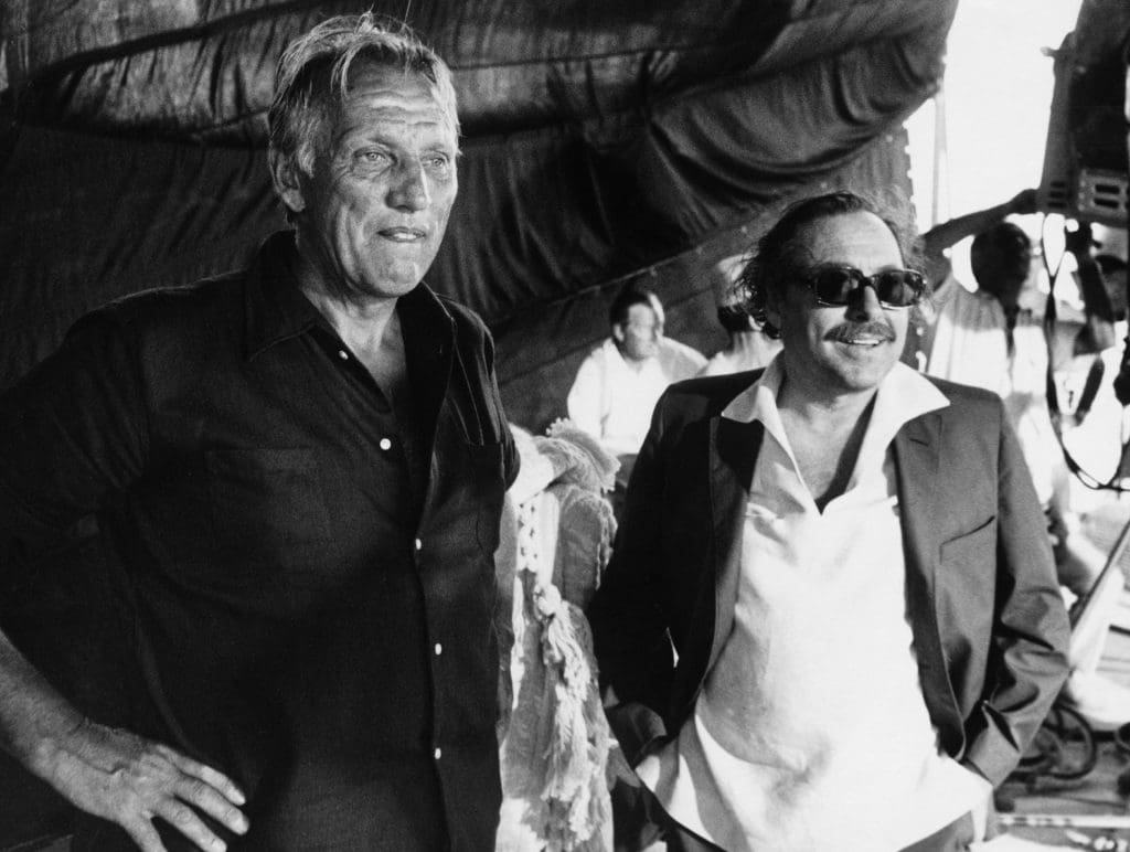 Joseph Losey and Tennessee Williams during the shooting of Boom (1969), Sardinia, Porto Conte, 1967. By Keystone France/Gamma-Keystone.