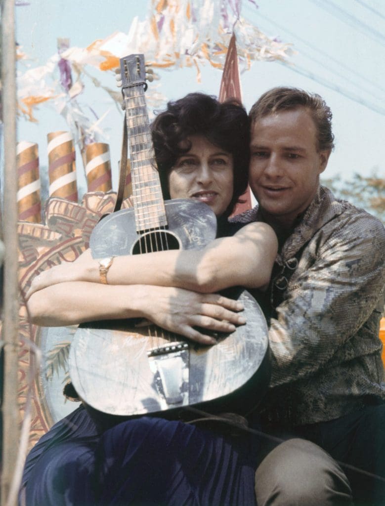 Anna Magnani and Marlon Brando on the set of Sidney Lumet’s The Fugitive Kind (1960). Written by Tennessee Williams.