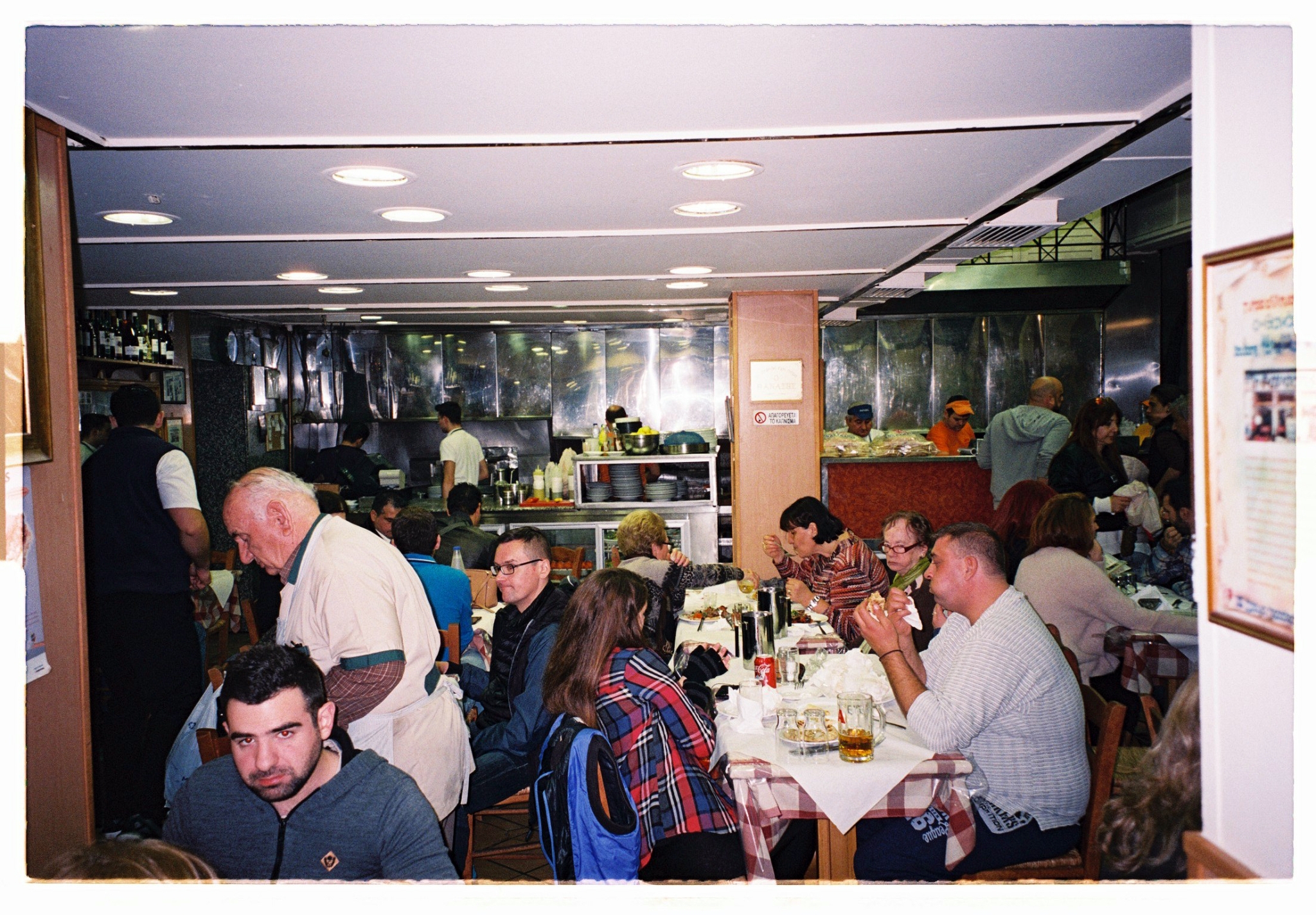 I wanted wooden beams and barrels of wine without distraction; white-shirted waiters, the smell of lamb roasting in the kitchen, and a mish-mash of familiar tavern props: a porcelain head of Aphrodite, tinsel, amateur paintings of the islands, uneven wicker seats, and a CD that played the weepy songs of Tsitsanis and Kazantzidis all evening. Klimataria was next to my apartment, and inside of the taverna’s walls, the Greece of my dearest memories was found alive and well. Although it isn’t dynamic enough to appear in a Condé Nast article about Athenian dining, I remember something Christine had told me when we walked past the Hotel Grande-Bretagne a few days prior. “In this hotel,” I boasted, recounting a visit from my previous trip, “they make special macaroons with mastichia,” to which she replied, “Why would you want to change something that is already good?”