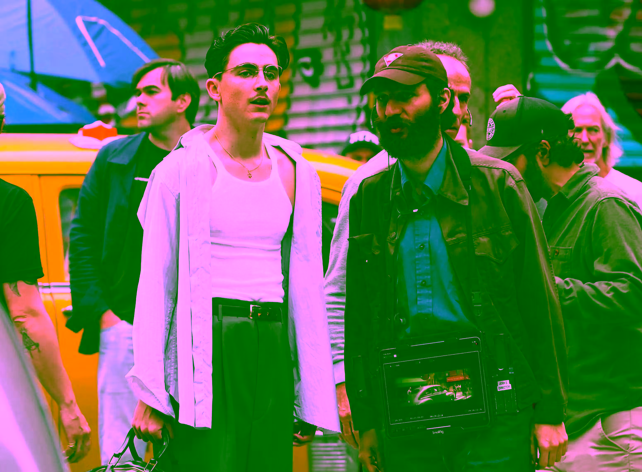 Timothée Chalamet and Josh Safdie on the set of Marty Supreme