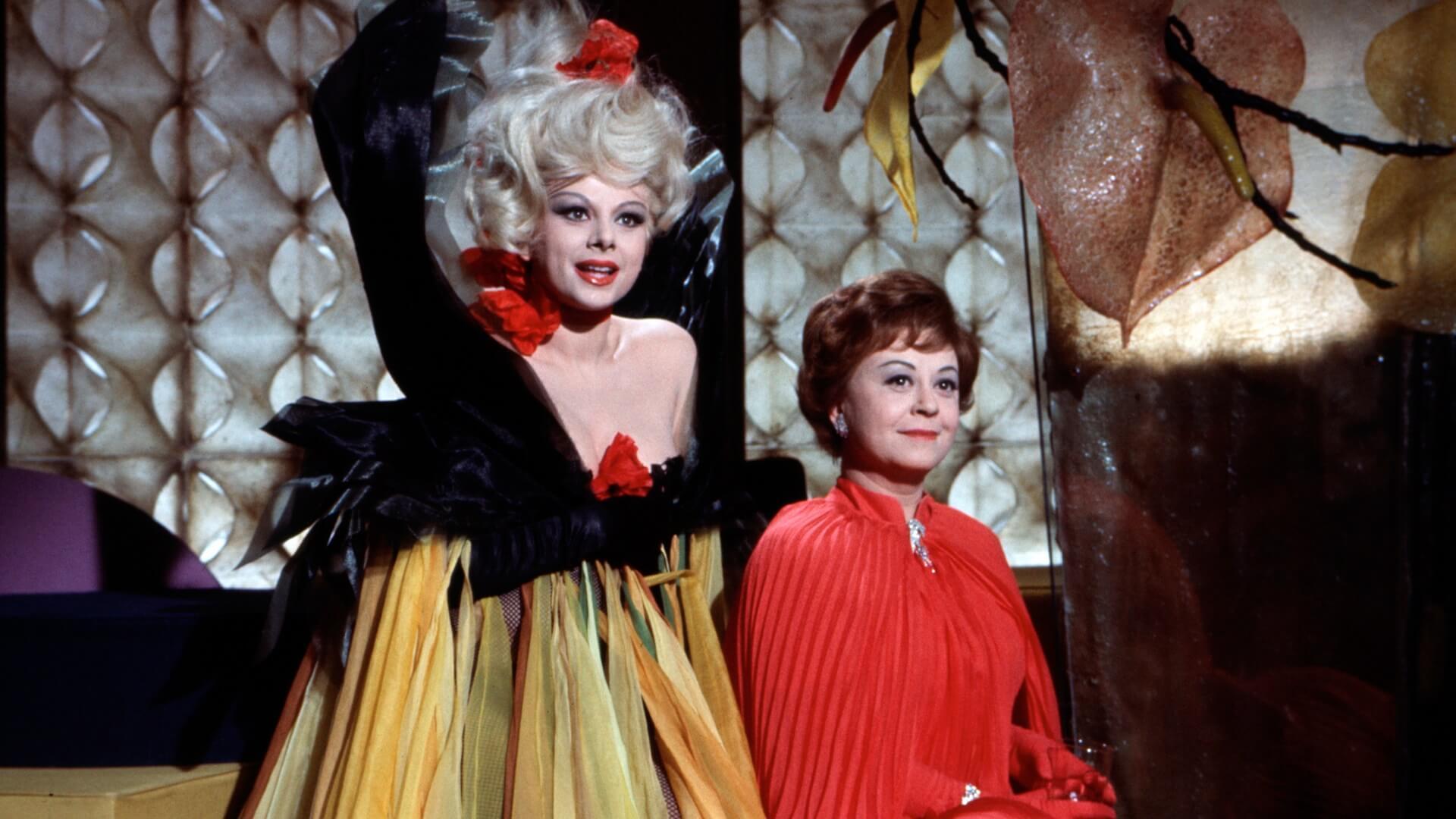 If you want inspiration from Fellini’s films but are searching for a more eccentric, look, turn to Juliet of the Spirits. One of his most surreal works, it follows Juliet, a woman haunted by suspicions of her husband’s infidelity, who turns to spirits and mysticism for strength and liberation. Among its many dreamlike costumes and hallucinatory visions, is Sandra Milo as Suzy, who wears this yellow and black feathered dress, with red flowers.