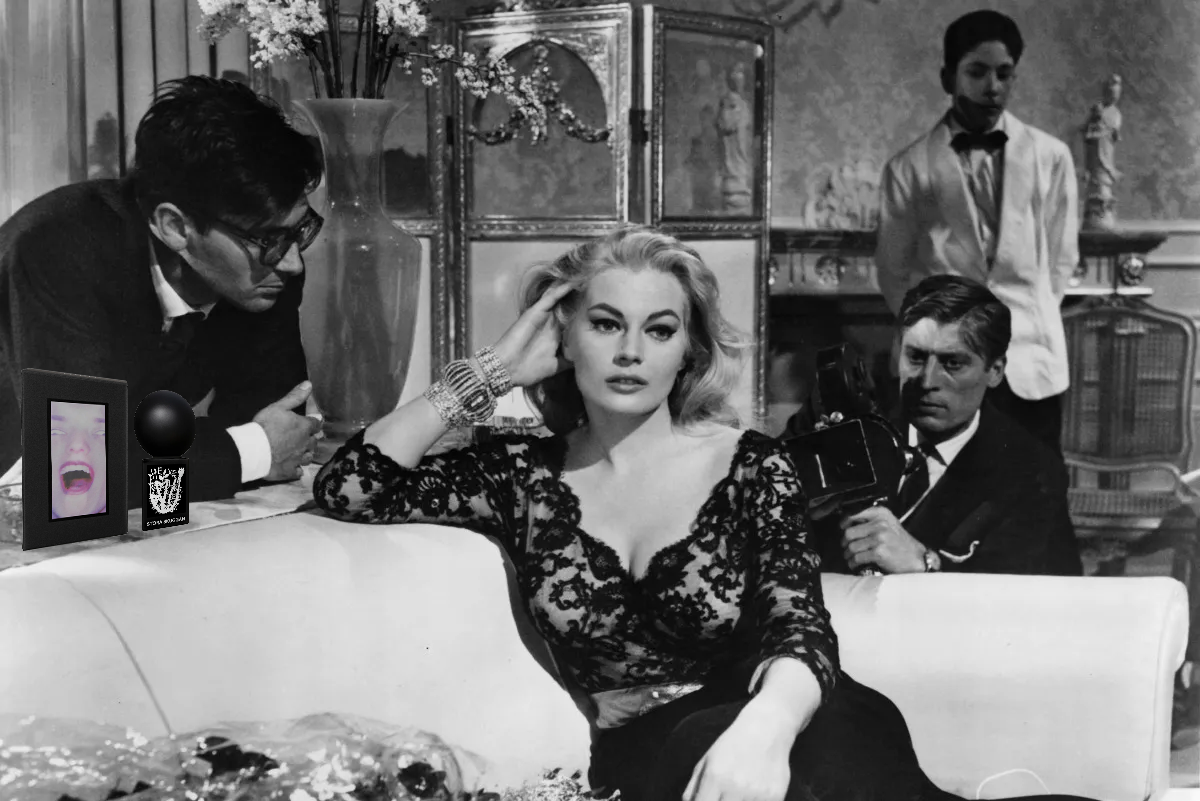 Still image from La Dolce Vita (1960) with fragrance Stora Skuggan’s Hexensable