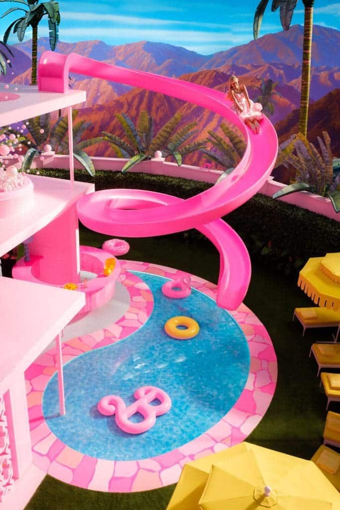 For the most part, the set design of Barbie has been safely locked away by Warner Bros. “It all goes into this vault – it’s very raiders of lost ark,” says Greenwood. “The Barbiecar is next to the Batmobile.” As a small memento, Spencer kept a miniature palm and a sun lounger. “By the end of the film you’re sort of fed up with it. I wouldn’t want a pink sofa,” says Spencer. “It’s a bit like when you go abroad and you think this pisco sour is fantastic and you get it home and it doesn’t taste the same. It’s best where it is,” adds Greenwood.