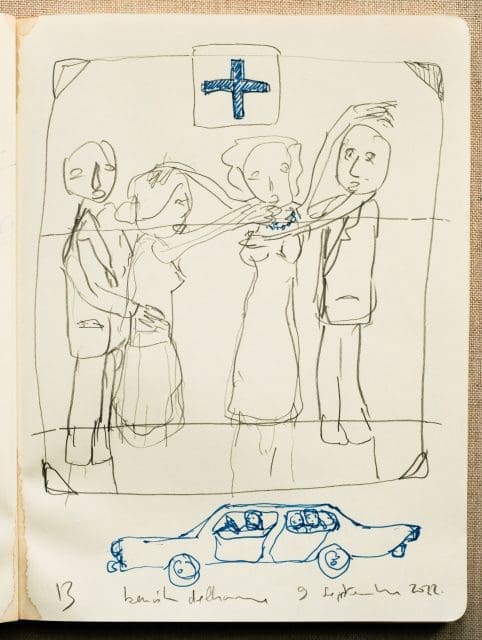 KG: I noticed it’s a film where props are really important, in their symbolism and as narrative devices—from the birdhouses, to the little ambulance at the beginning, which really plays with this sense of scale. Or the pearl necklace… Can you please talk a bit more about your approach to props and objects?