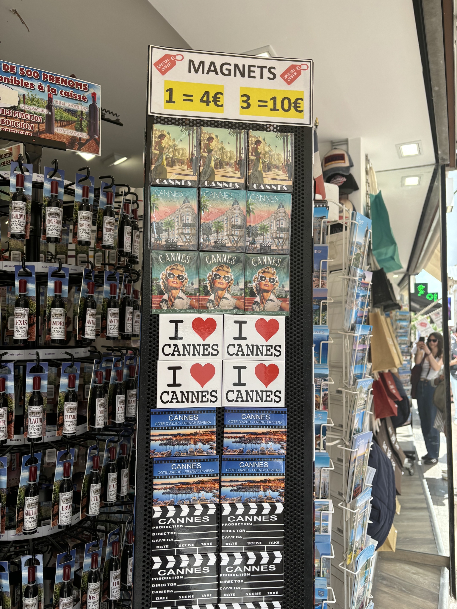 Last full day in Cannes. The sun is out. We are leaving our AirBnB in Juan les Pins and I am couchsurfing for a night in Antibes. I work in the morning, before meeting the wonderful journalist and film critic Sophie Monks Kaufman, who tells me this is her 10th Cannes and wears a rather chic red festival back pack from a few years ago. I find the secret canteen (it’s hidden in the basement) and head to the gift shop (stocking up on Cannes lighters and magnets as gifts).