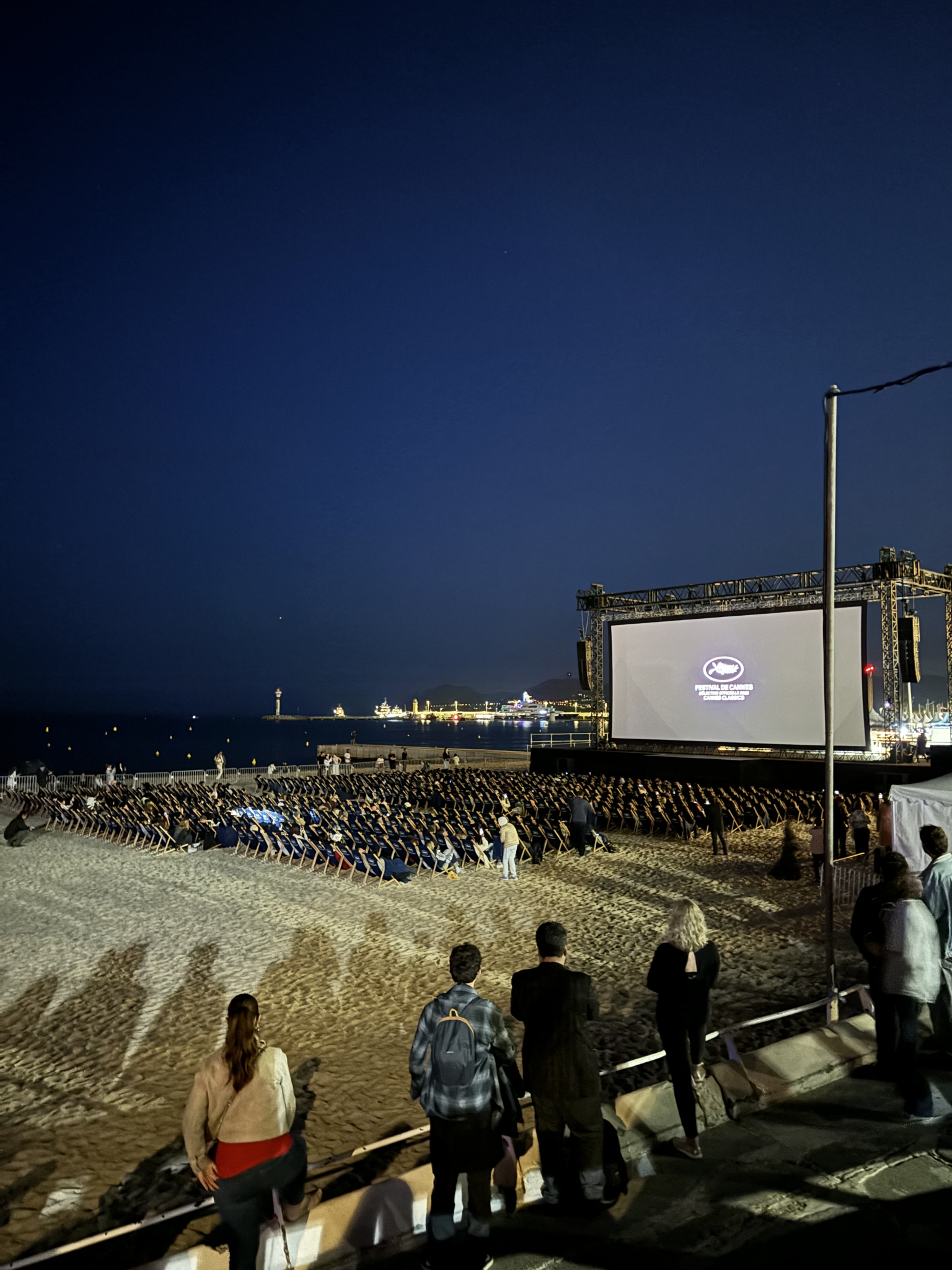 Issy Carr (of Rabbit’s Foot Films) and I decide to try and catch a later screening of Die My Love at the Agnès Varda theatre to no success. But there is a silver lining. We see My Father’s Shadow (Akinola Davies Jr) at Debussy, a meandering film about two brothers who follow their father around Lagos for the day. Issy and I then wander around. A veteran, she shows me the ‘best loo in Cannes’, which are inside The Mondrian. They are pretty good, and we have a slapstick laugh with an Italian film producer based around the force of the Dyson hand dryers. In the evening, without tickets, we head towards Cinéma de Plage, a Cannes cinema that is open to the public. We perch on the wall by the beach and watch the opening moments of Nanni Morretti’s Palombella Rossa (1989), before heading towards Le Petit Majestic. Le Petit Majestic, not to be confused with Le Majestic—one of Cannes more supreme hotels—is a hotspot where journalists and industry people spill out onto the street with plastic cups of beer. We bump into The Guardian critic and A Rabbit’s Foot contributor Peter Bradshaw, who tells me his predictions, highlights and lowlights of the festival, enjoy a few drinks and whizz back home to Juan Les Pins, through the tender night.
