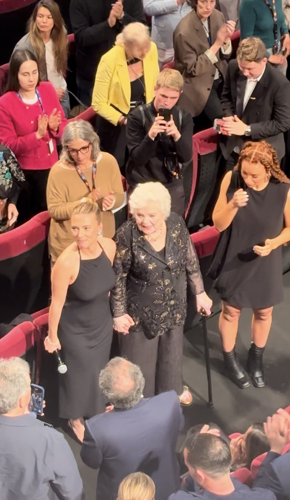 As I leave, it’s still raining and I get the somewhat depressing shuttle (whenever you hear the word shuttle, you know you’re in trouble) back into town, having a croque monsieur for the second day in a row at Café Poet (one of the nicest, inexpensive cafes in Cannes). It’s then time for Eleanor the Great, the directorial debut from Scarlett Johansson. As a real A-lister, there’s a huge buzz in the air, with people leaning over the balcony to see her and other celebrities in the audience. (Adrien Brody, who Thierry Fremaux, the festival’s director, greets in his introduction). The film, highly sentimental and somewhat cloying, tells the story of a nonogenarian (June Squibb, 95, last in Cannes for Alexander Payne’s 2013 Nebraska) who, borrowing the story of her recently deceased best friend, pretends to be a holocaust survivor. Chaos ensues when she befriends a young journalist who wants to tell her story. Maybe it’s because I’m tired, maybe it’s because it’s Cannes, but I am literally in bits by the end, tear stains on my notebook. It’s a reminder that whatever pretentions you might have about cinema, when it hits, it hits.