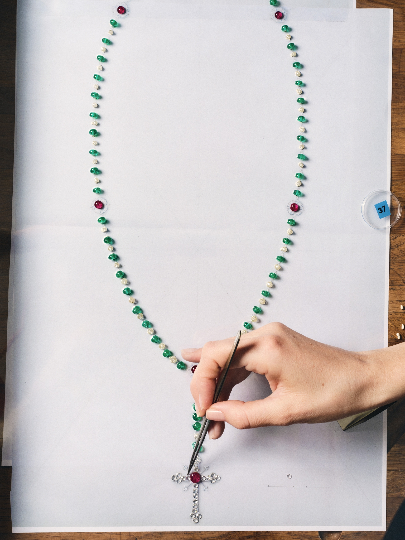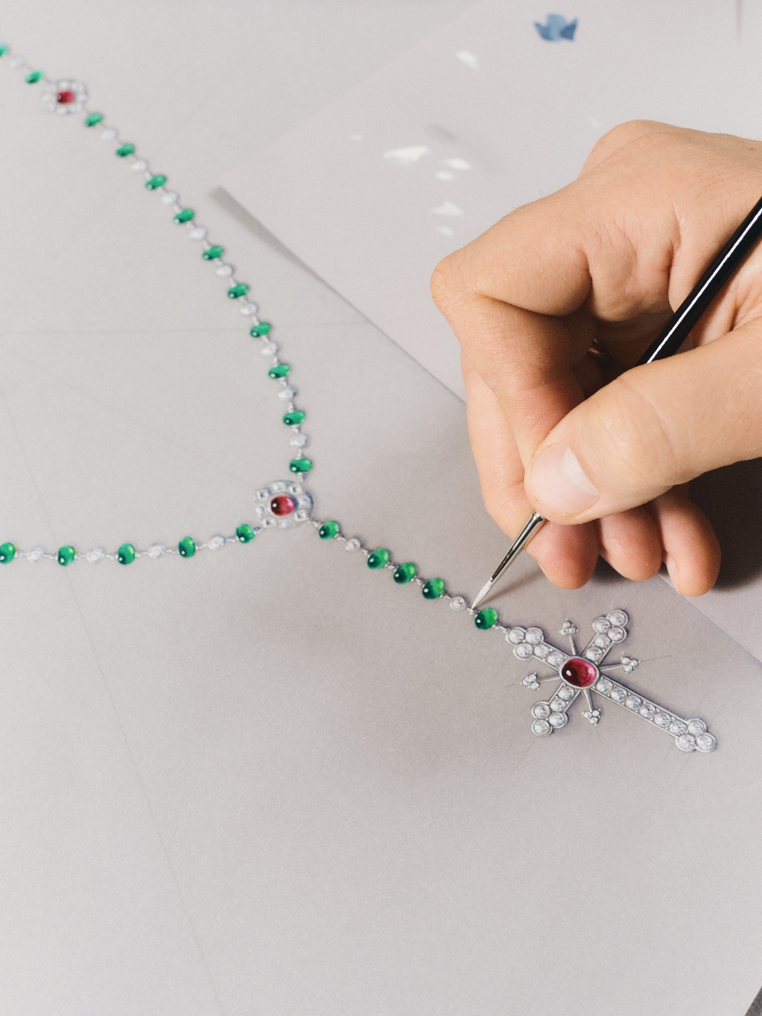 It’s also evidence of Anderson’s attention-to-detail that the process was such a long one. His request involved the expertise of Cartier’s High Jewellery studio, who brought the rosary to life in 2024. The studio is one of the largest jewellery workshops in the world, employing over 500 people and committed to training the next generation of artisan jewellery craftspeople. Each of these treasures can take between 1000 to 2000 hours of work.