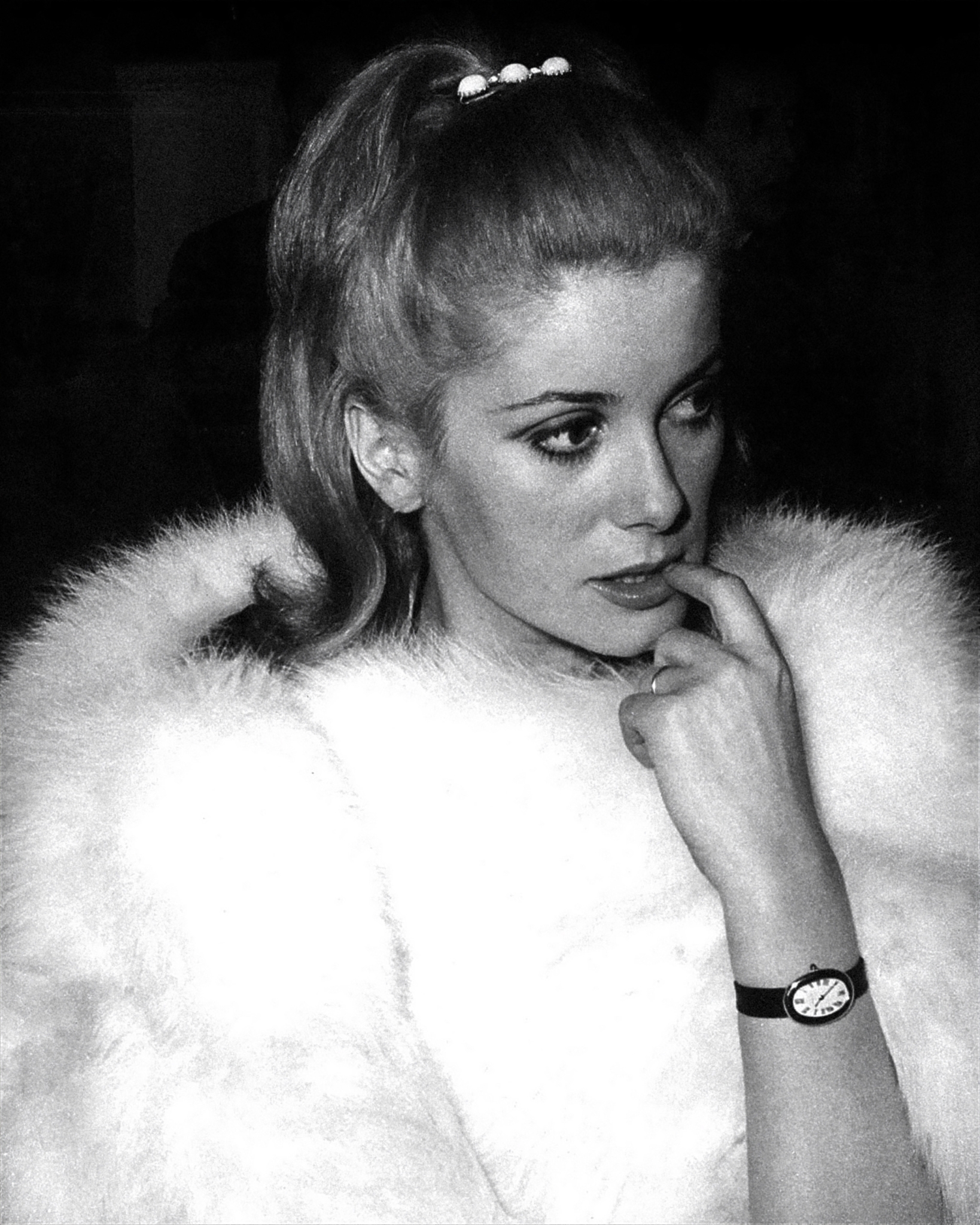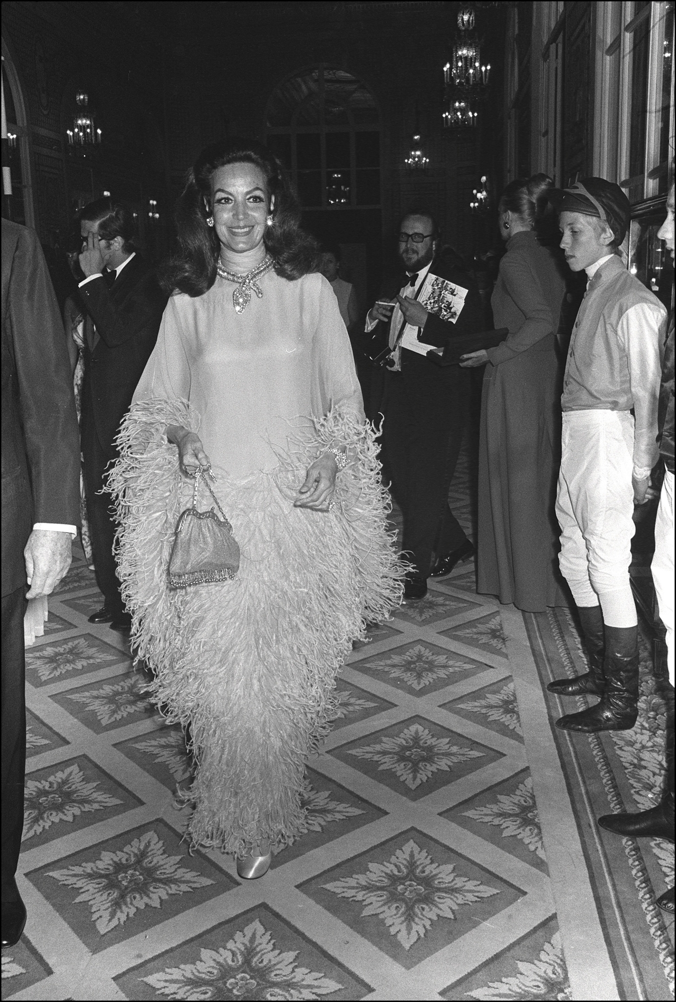 María Félix photographed by Daniel Simon during the delivery of The Riding Crop of Gold in Deauville, 19th August 1973. She is wearing her snake necklace commissioned from Cartier Paris in 1968.