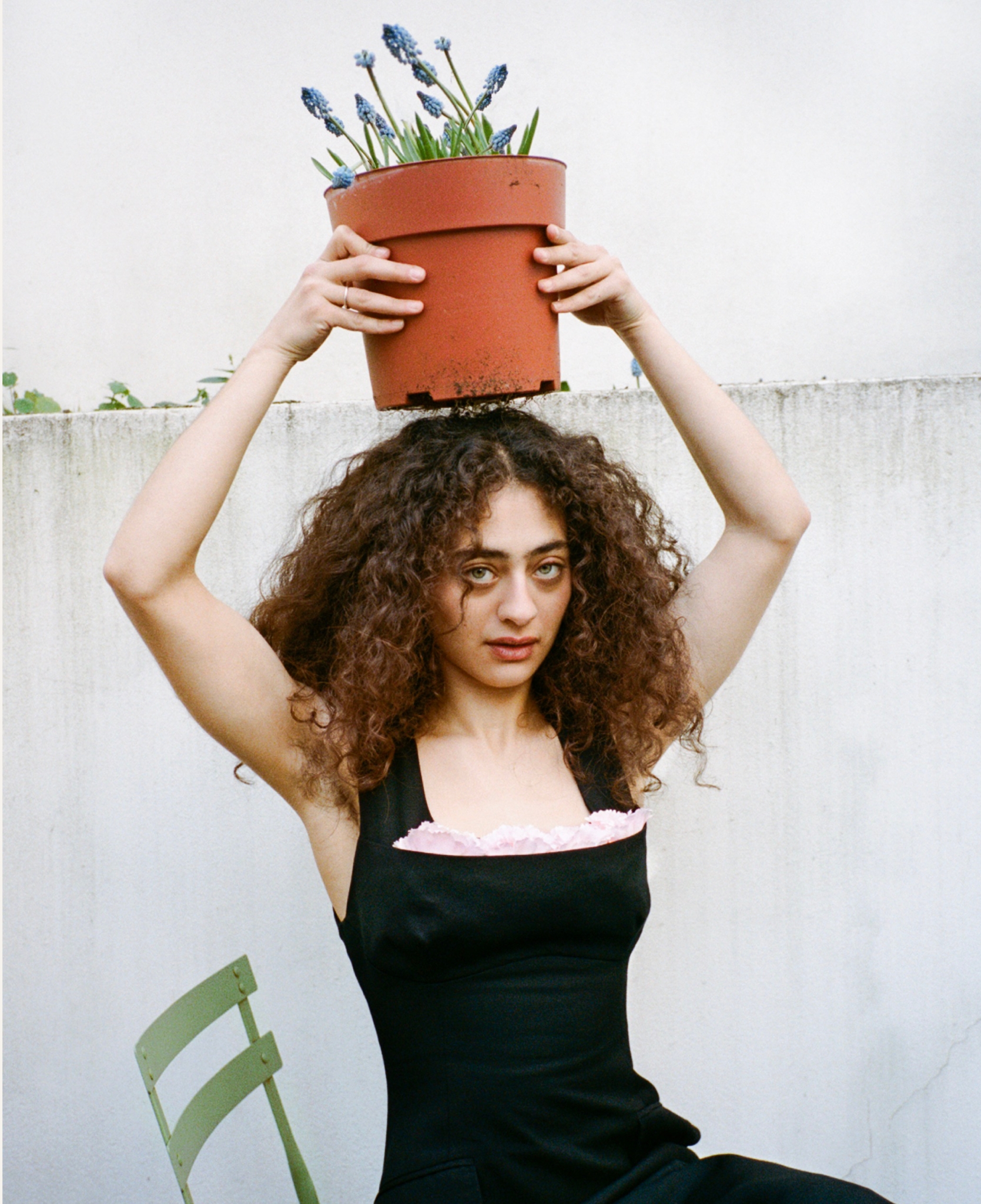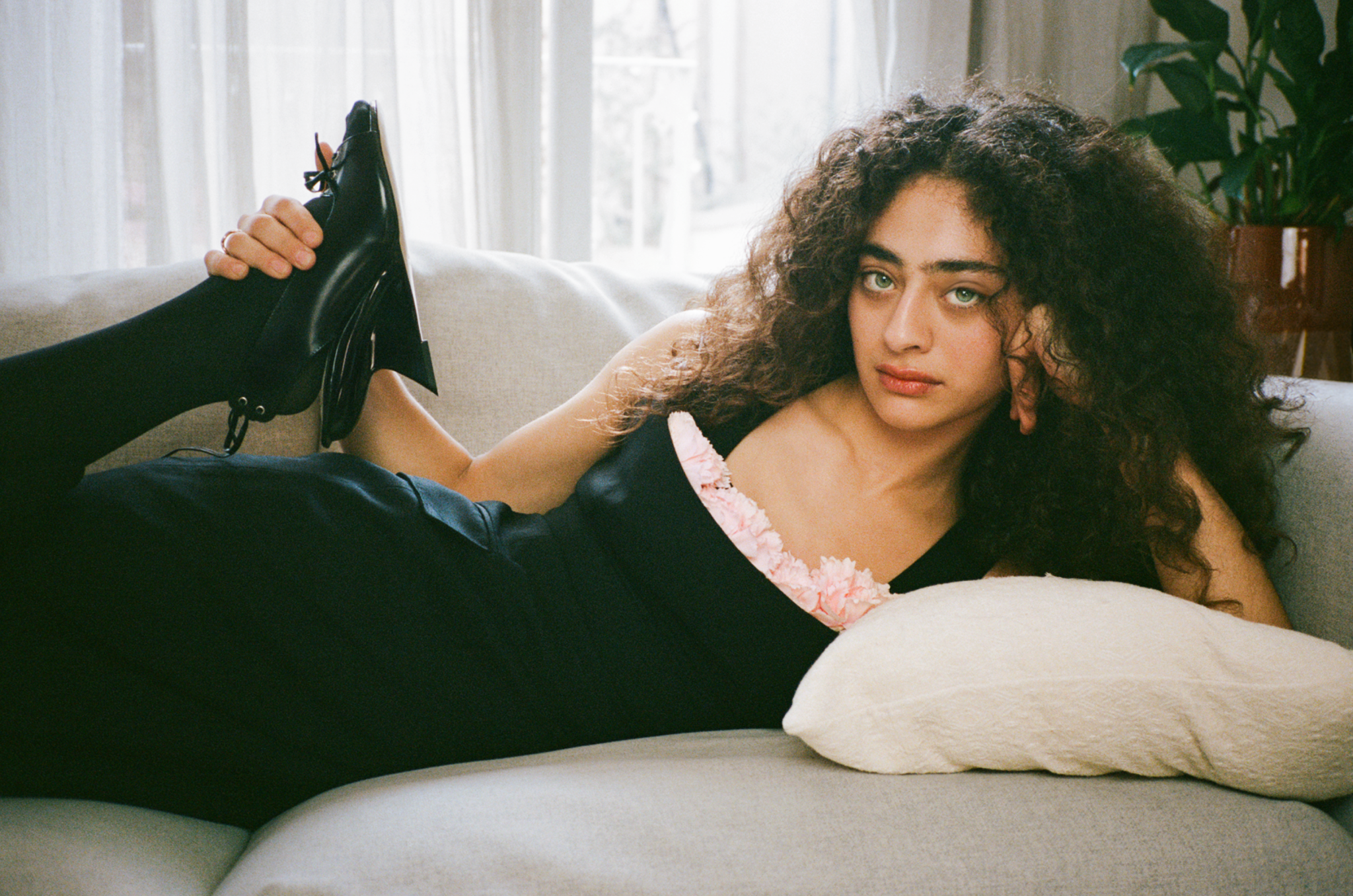 Our conversation is on the day before Kurdish New Year—Newroz—a celebration of the arrival of spring, and a day you are supposed to spend out of the house. Hekmat explains proudly that the Kurds are a mountainous people without borders, meaning religions cross Sunni and Shia Islam, Yazidism, Yarsanism, Zoroastrianism and Christianity. The actor is filled with a sense of possibility for what is to come. Whilst she is grateful to modelling for the start it gave her, teaching her the foundations of “finding a persona, pretending to have a certain attitude,” the fashion industry already makes her feel old. Working in film feels like a new possibility. “It’s a much longer span in terms of career longevity. And I’m not afraid of it. I’m not afraid of it,” she says resoundingly. “I believe that what I’m doing is going to make sense in the long run.”