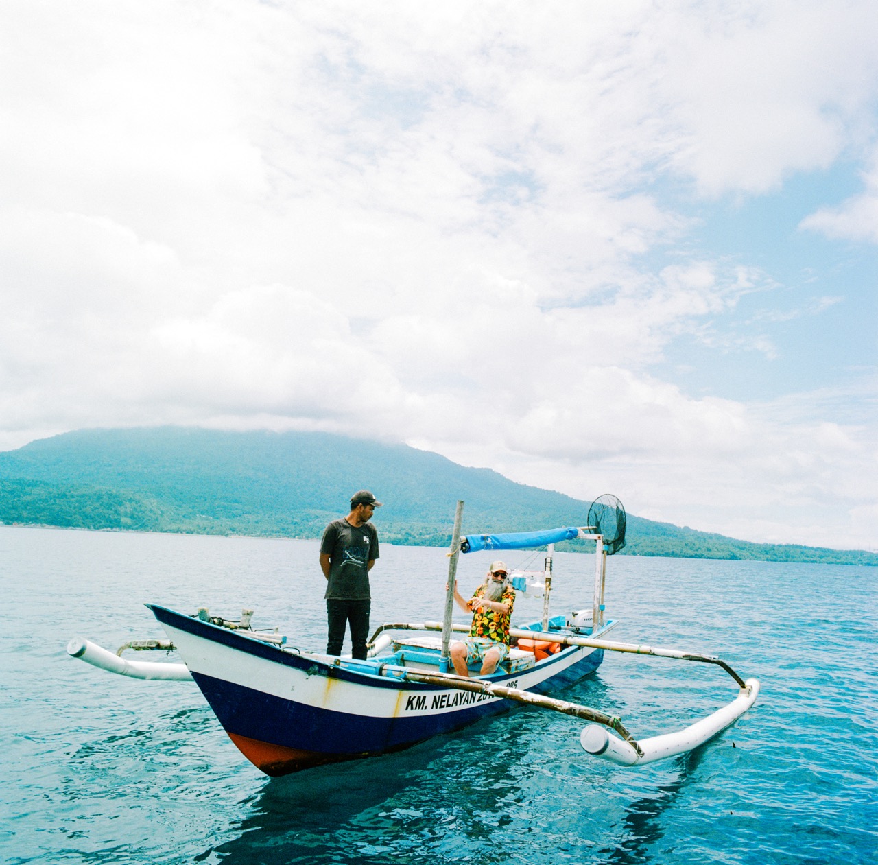 Ellis sits on the crest of the hill with den Haas and Rio, who gestures toward Krakatoa, the famously volcanic island on the horizon that Rio tells us, “has been pretty active lately”. The light has turned a rich, cinematic gold. Kurzel, watching from a distance, makes sure the scene is captured before quietly stepping into frame where he settles by Ellis to plan the next sequence. All around us, dozens of small holes puncture the ground.