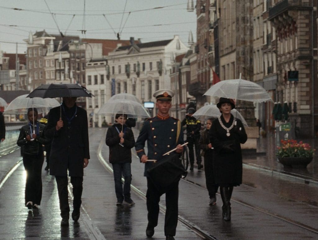 Occupied City reflects on the meaning of home. Showing how a place becomes inhospitable to its own inhabitants, but also what it is to arrive in a place that isn’t ‘yours’. McQueen, who moved to Amsterdam 25 years ago, focuses on contemporary Black lives: from shots of men filming music videos in the street and ceremonies remembering African victims of the Dutch slave trade to racist micro-aggressions. There is a sense McQueen is trying to find himself in the city. Towards the end of the film we see refugees of the Ukraine War arrive, the streets entirely taken over by climate protesters and a Black family celebrating their son’s Bah Mitzvah. New, moving occupations which gesture towards more hopeful futures.
