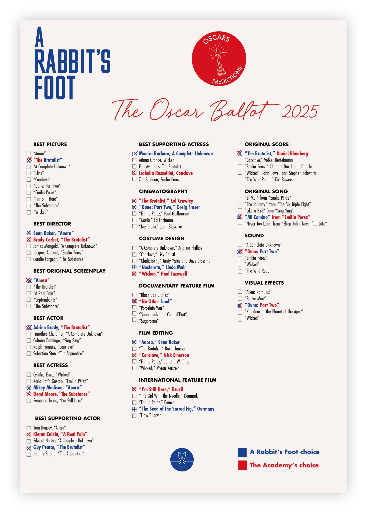 Nevertheless, the team here at A RABBIT’S FOOT are intent on celebrating the movies themselves, especially those overshadowed by the controversy but standing tall as triumphs of the medium. Below, you can see our picks for each major award below—the nominees we hope will win, and the ones we predict the Academy will crown as this year’s champions.