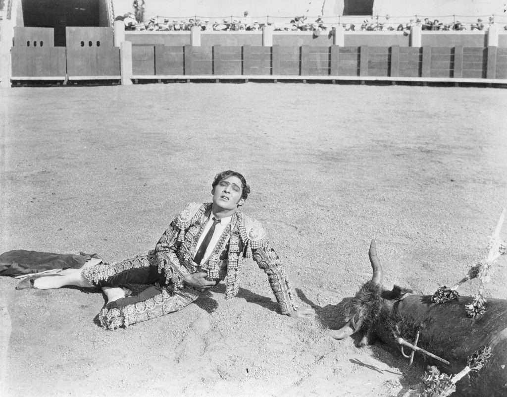 In The Four Horsemen Of The Apocalypse in 1921, the anti-war epic whose genuine ambition and intelligence makes it Valentino’s best film, he plays the pampered and indulged grandson of an Argentinian plutocrat, who goes on to have a scandalous affair in Paris with a married woman but is redeemed by his gallant service for France in World War One. Valentino has a glorious tango scene in which he capriciously throws his female partner to the floor—he does much the same thing while dancing the mazurka in The Eagle (1925), where he plays a Russian army officer. In Blood And Sand (1922), he plays a smolderingly proud Spanish bullfighter who marries his childhood sweetheart but has an affair with a cynical and wealthy woman of the world who taunts him: “Someday you will beat me with those strong hands—I want to know what that feels like.” His fanbase may have indulged in just that steamy reverie. His cult-like charisma could be said to have a link to the fascist dictators who were becoming famous the same time as him and who understood the vast reach of the cinema and its intimate access to people’s hearts and minds—although Benito Mussolini loathed Valentino for wanting American citizenship.